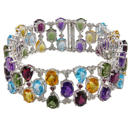 14K WHITE GOLD DIAMOND AND MULTICOLOR BRACELET