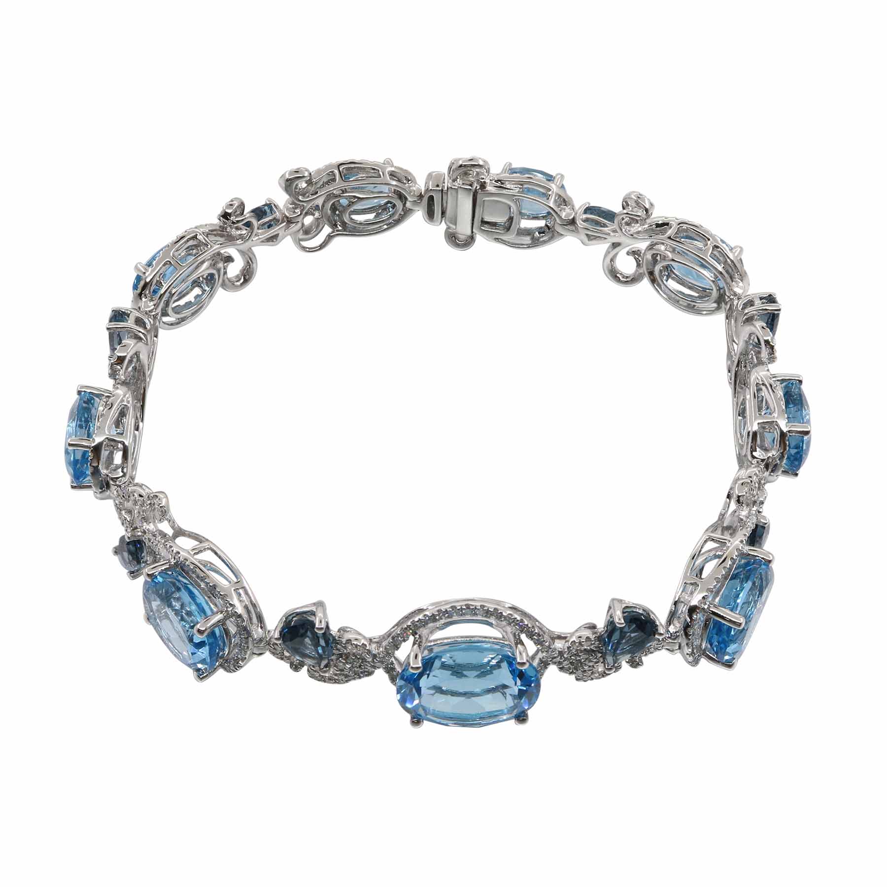 14K WHITE GOLD DIAMOND, LONDON BLUE TOPAZ AND LONDON BLUE TOPAZ BRACELET