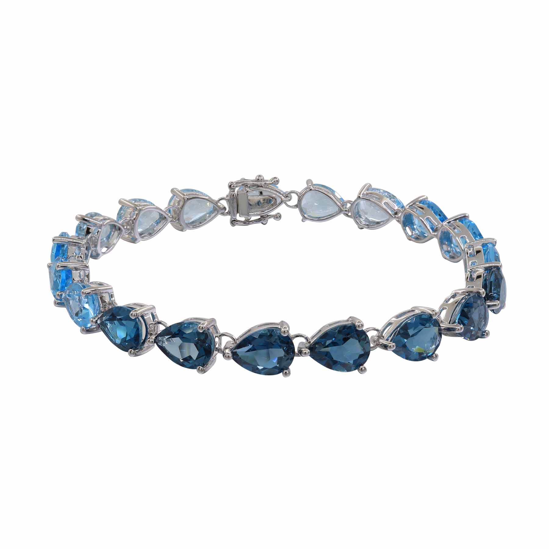 - 14K WHITE GOLD SHADED SKY BLUE TOPAZ, SWISS BLUE TOPAZ, AND LONDON BLUE TOPAZ BRACELET