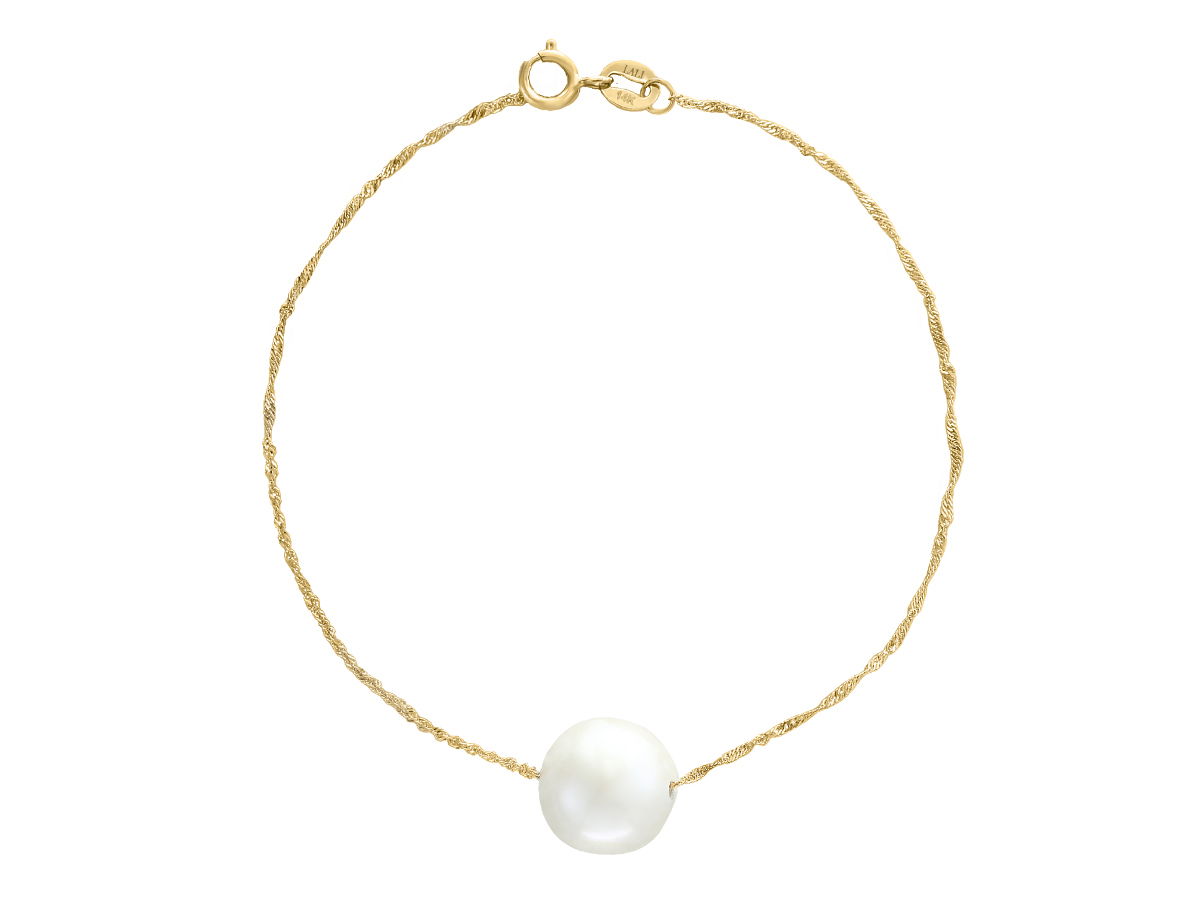 14K YELLOW GOLD WHITE FRESH WATER PEARL BRACELET
