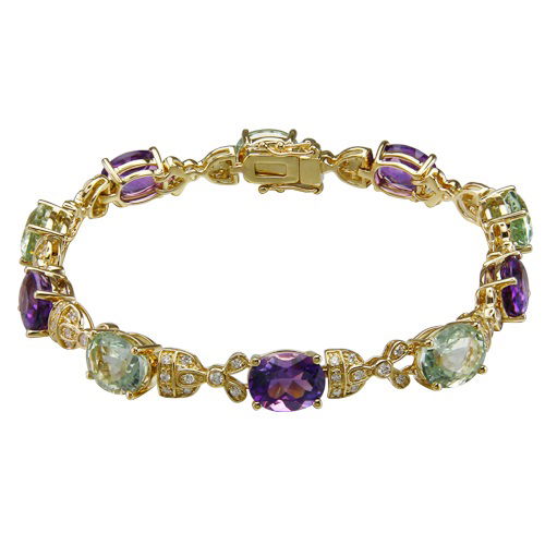14K YELLOW GOLD DIAMOND, GREEN AMETHYST AND AMETHYST BRACELET