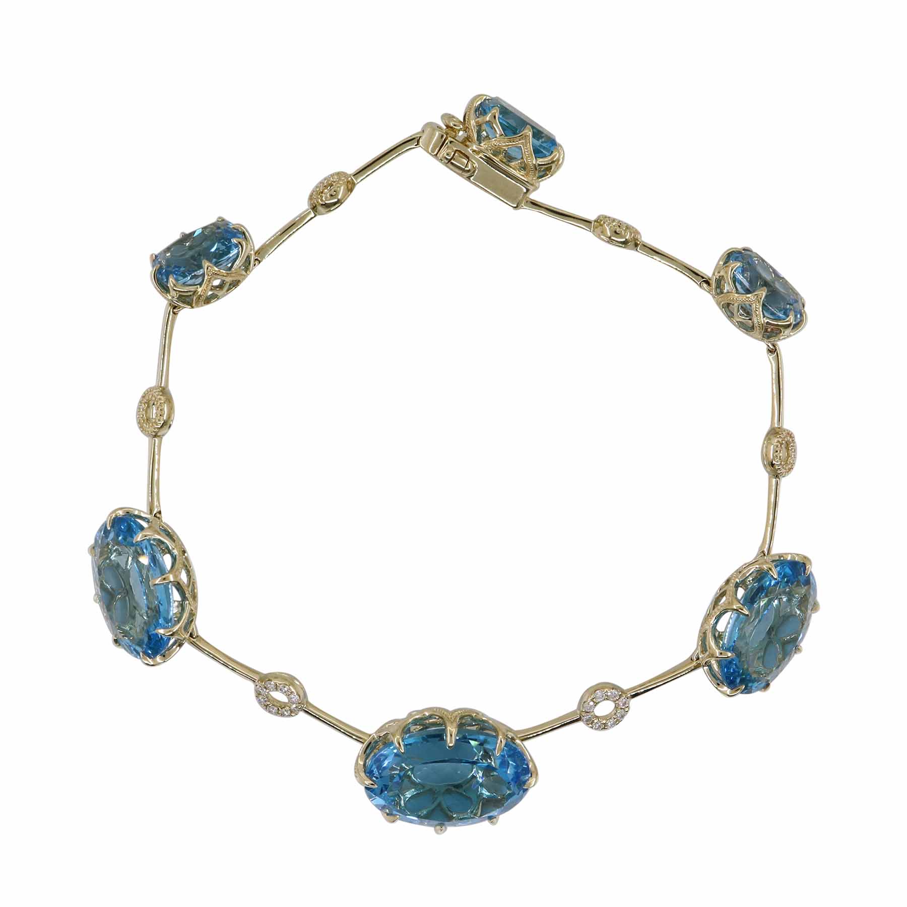 14K YELLOW GOLD DIAMOND AND SWISS BLUE TOPAZ BRACELET