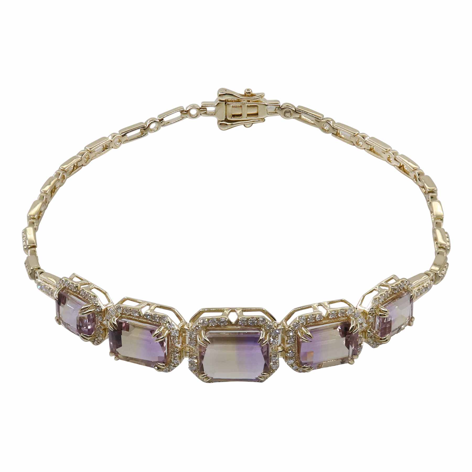14K YELLOW GOLD DIAMOND AND AMETRINE BRACELET