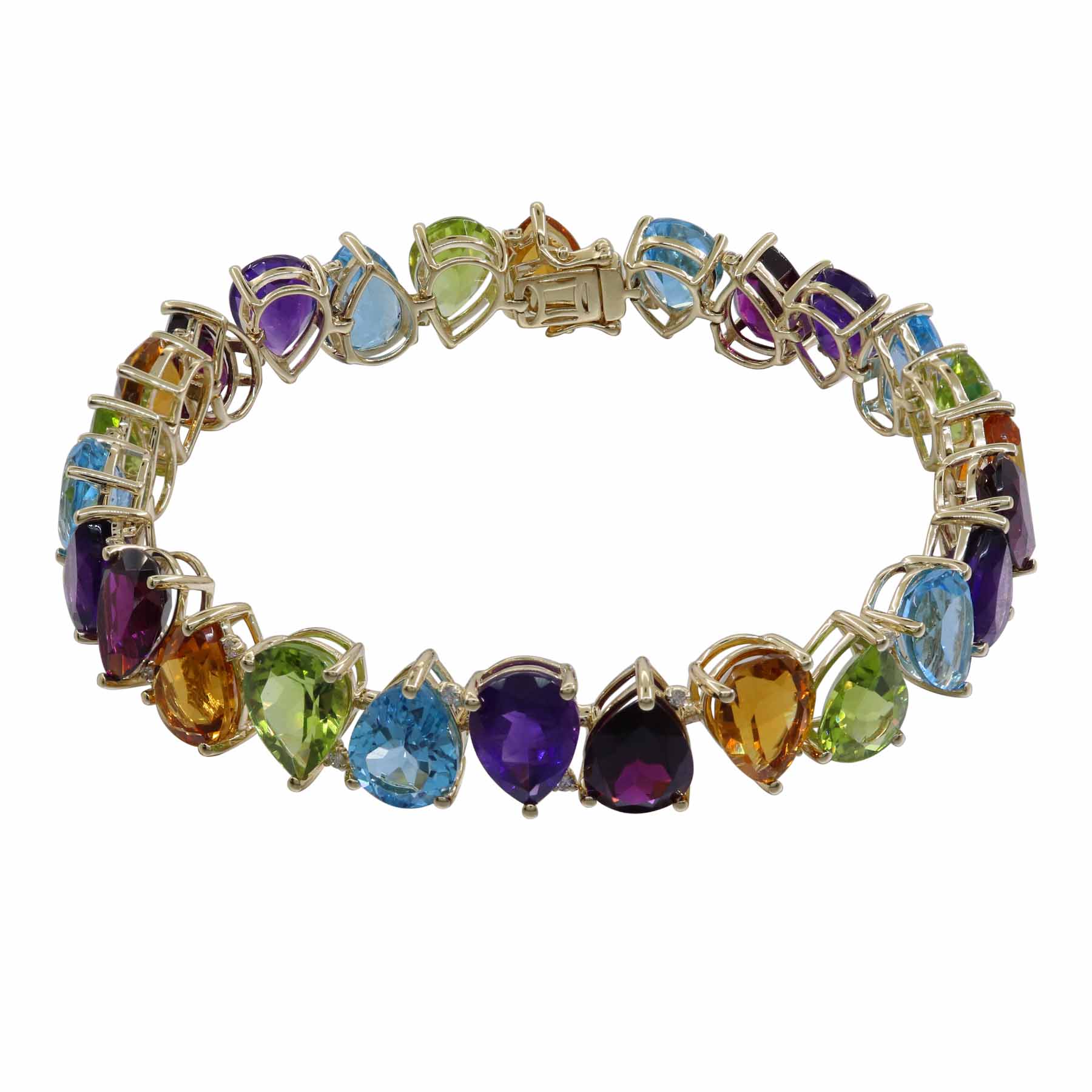 14K YELLOW GOLD DIAMOND AND MULTICOLOR GEM STONES BRACELET