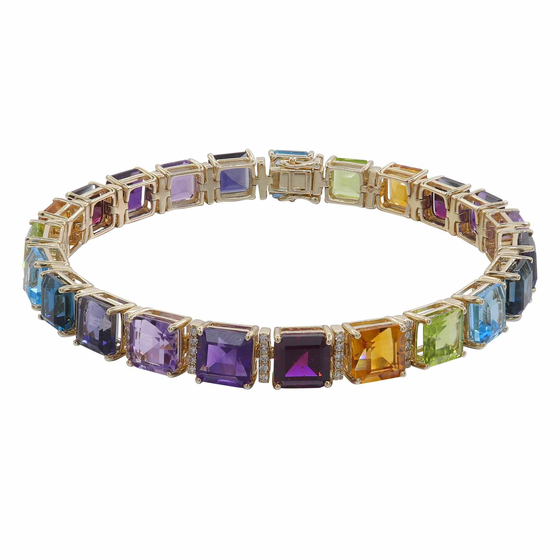 14K YELLOW GOLD DIAMOND AND MULTICOLOR GEMSTONE BRACELET