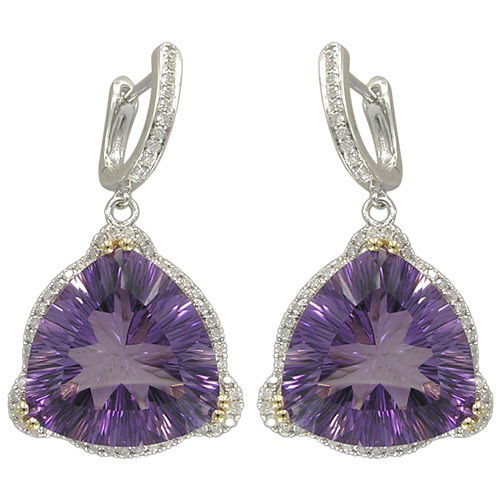 14K YELLOW AND WHITE GOLD DIAMOND AND AMETHYST EARRING