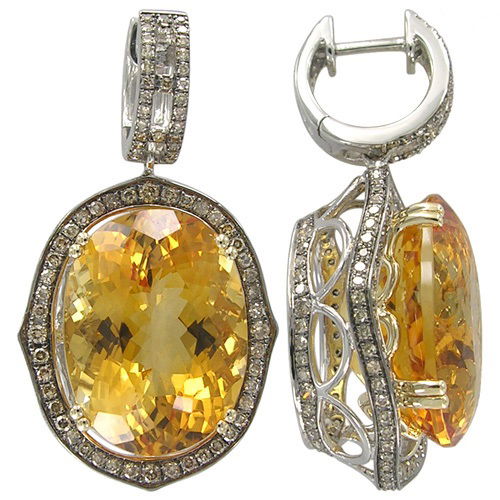 14K YELLOW AND WHITE GOLD BROWN DIAMOND AND CITRINE EARRING