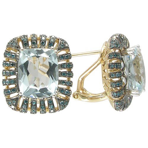 14K YELLOW AND WHITE GOLD TREATED BLUE DIAMOND AND AQUAMARINE EARRING