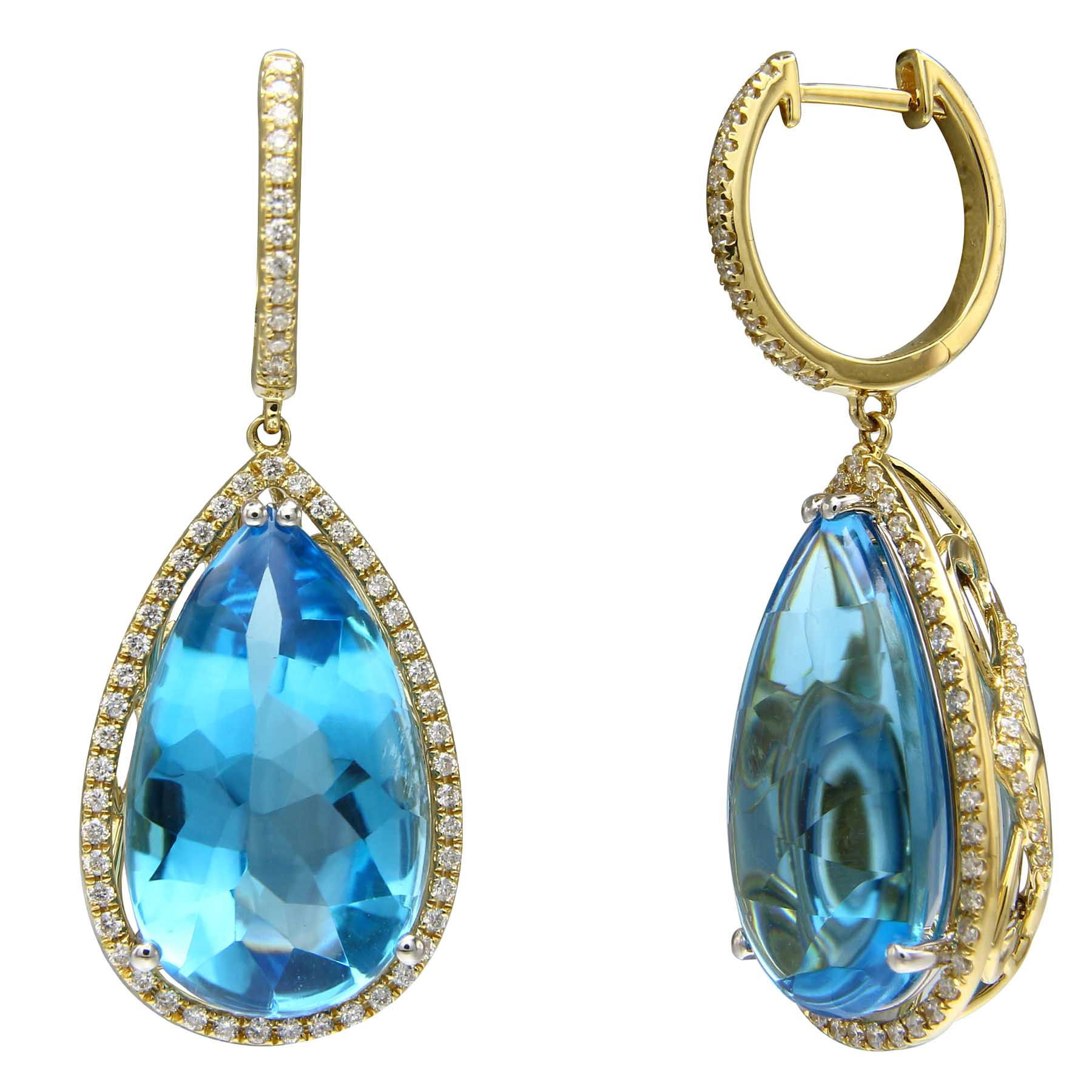 14K YELLOW AND WHITE GOLD DIAMOND AND SWISS BLUE TOPAZ EARRING