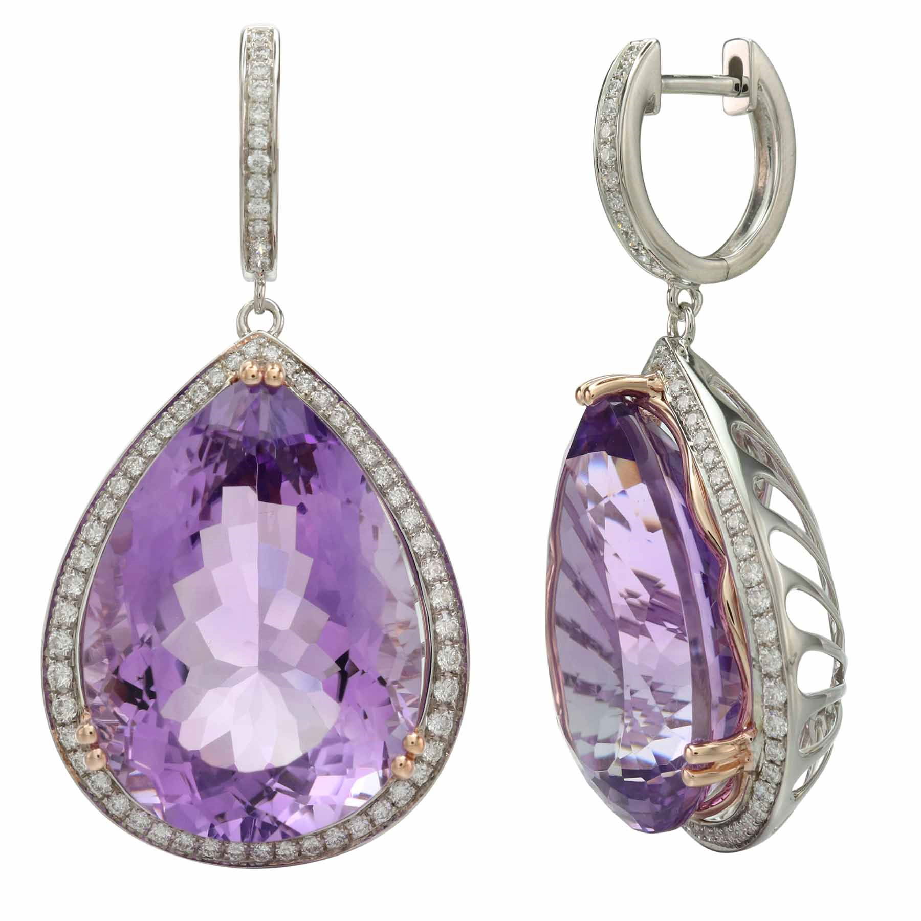 14K WHITE AND ROSE GOLD DIAMOND AND PINK AMETHYST EARRING