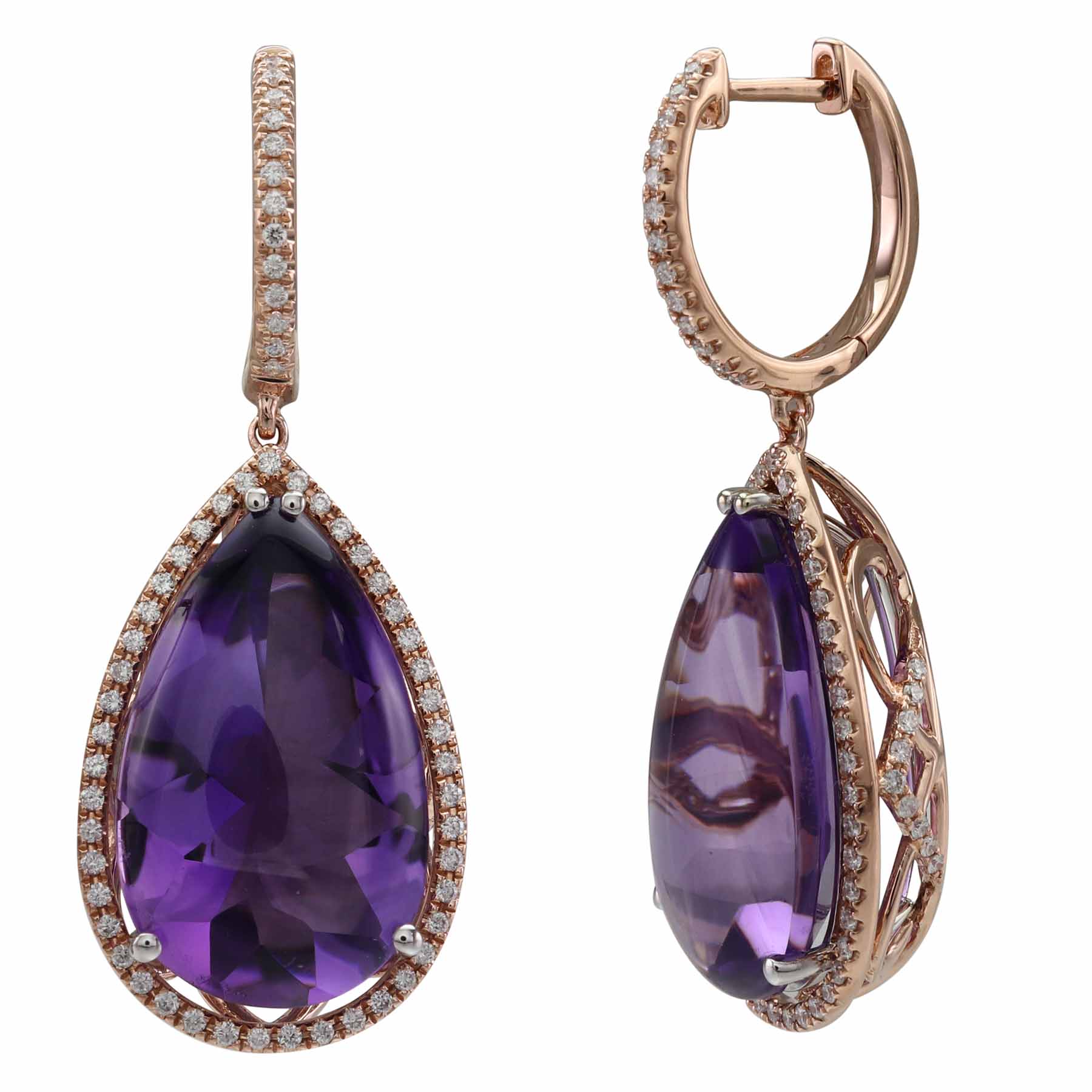 14K ROSE AND WHITE GOLD DIAMOND AND AMETHYST EARRING