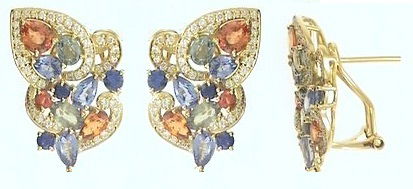 18K YELLOW GOLD DIAMOND AND MULTICOLOR SAPPHIRE EARRING