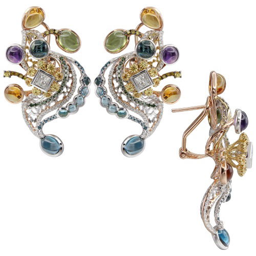 18K WHITE GOLD DIAMOND AND MULTICOLOR EARRING