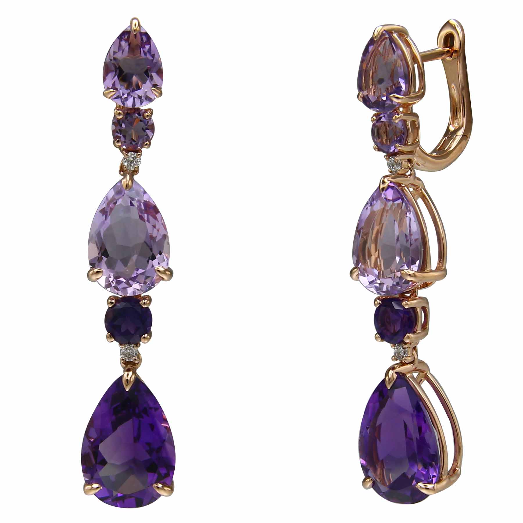 18K ROSE GOLD DIAMOND,PINK AMETHYST AND AMETHYST EARRING