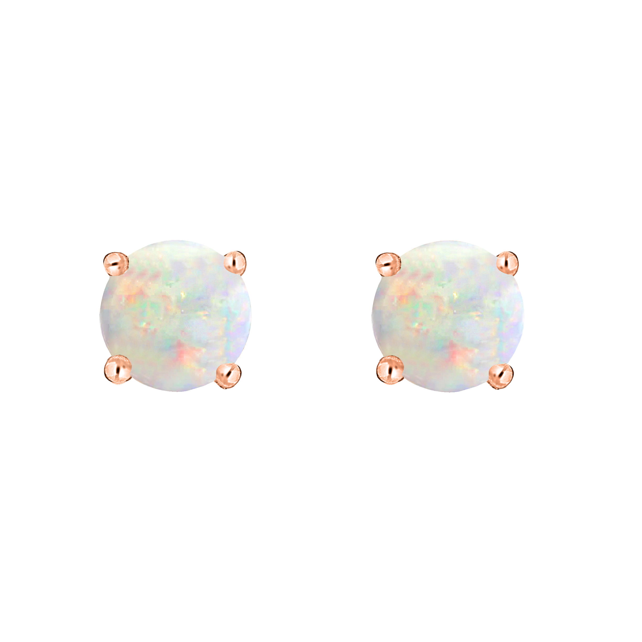 Radiant Australian opal shines in these timeless rose gold earrings.• 5mm Round Australian Opal Gemstones• 14K Rose Gold Setting• Secure Backings• Semi Precious Birthstone Collection
