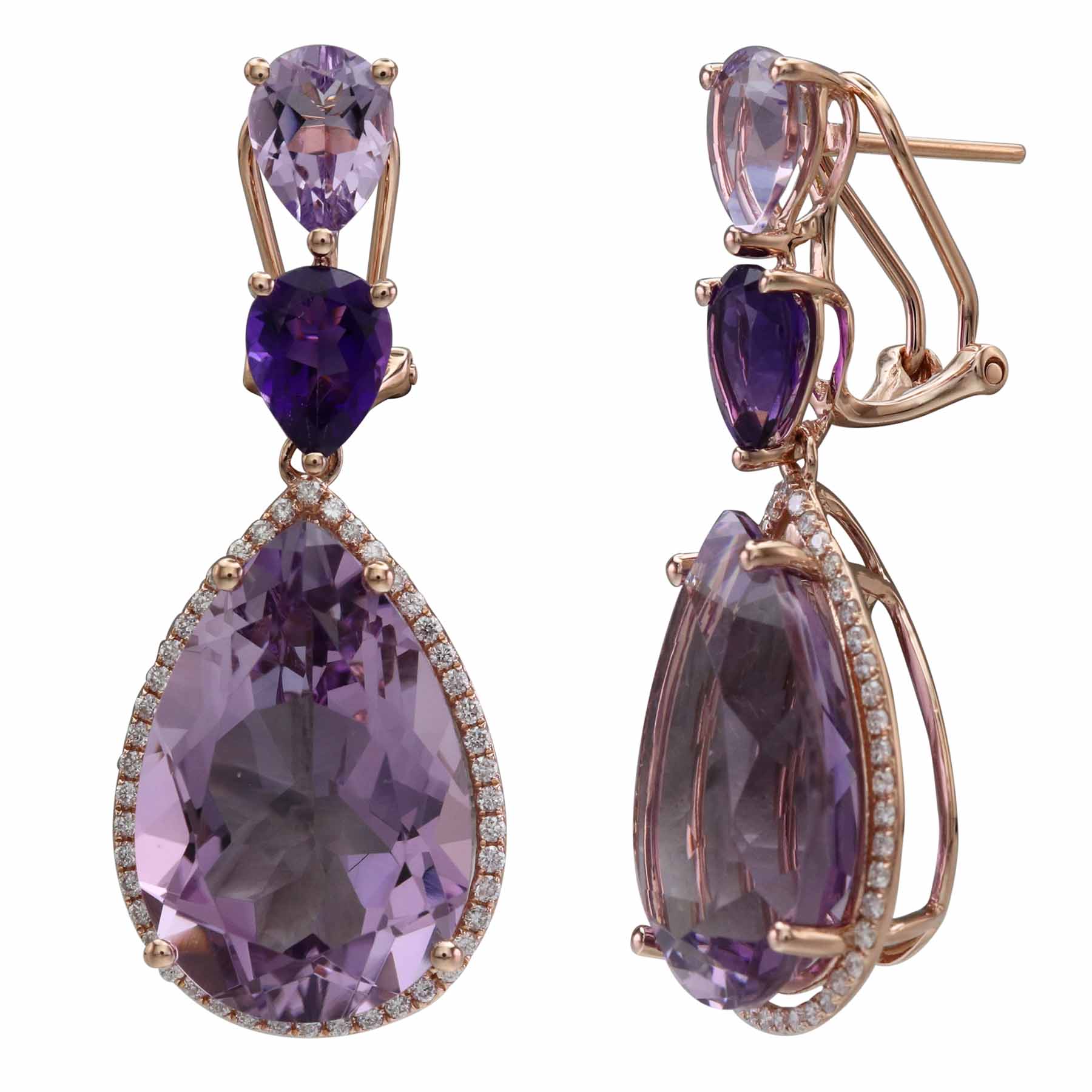 14K ROSE GOLD DIAMOND, AMETHYST AND PINK AMETHYST EARRING