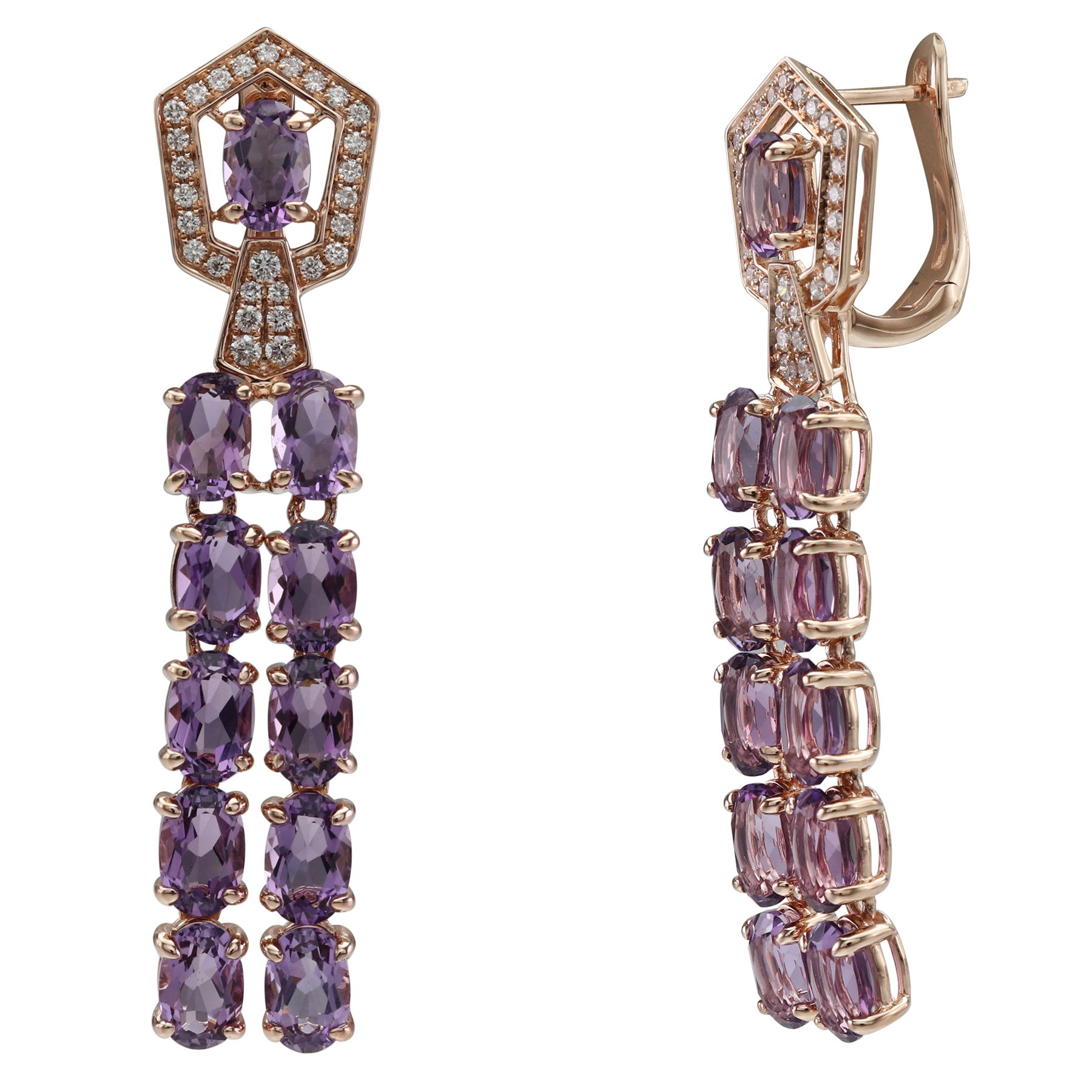 14K ROSE GOLD DIAMOND AND AMETHYST EARRING