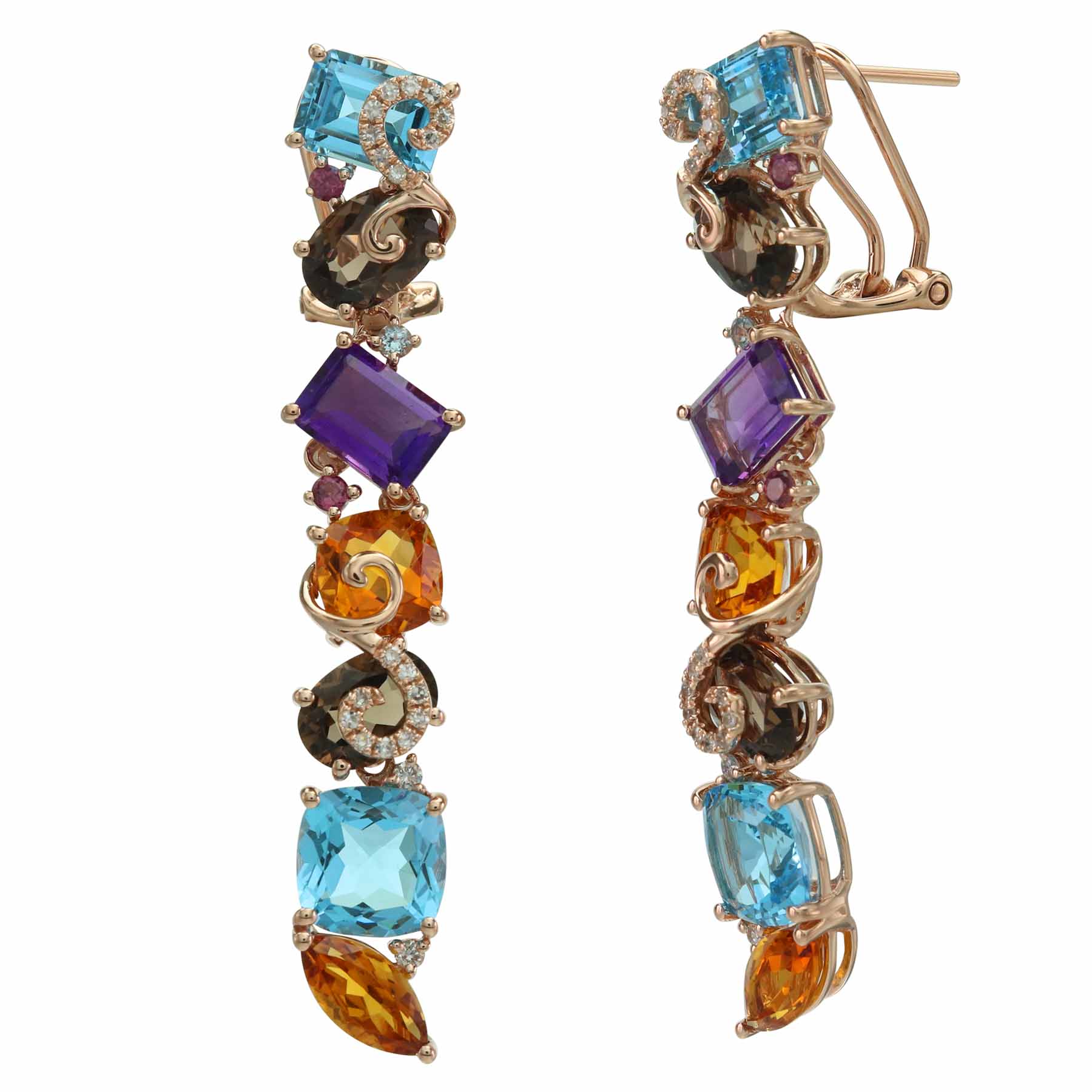 14K ROSE GOLD DIAMOND, MULTICOLOR AND AMETHYST EARRING