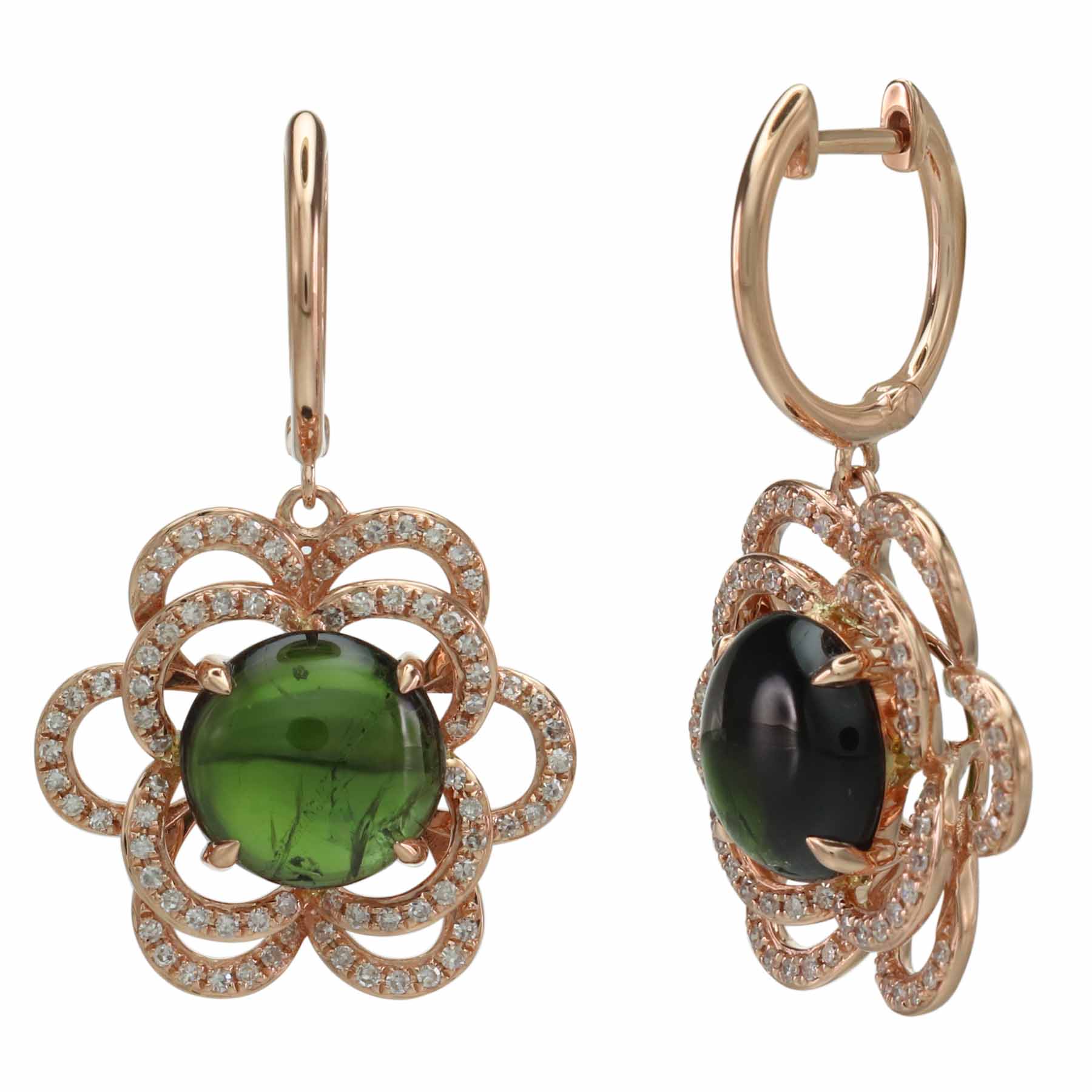 14K ROSE GOLD DIAMOND AND GREEN TOURMALINE EARRING