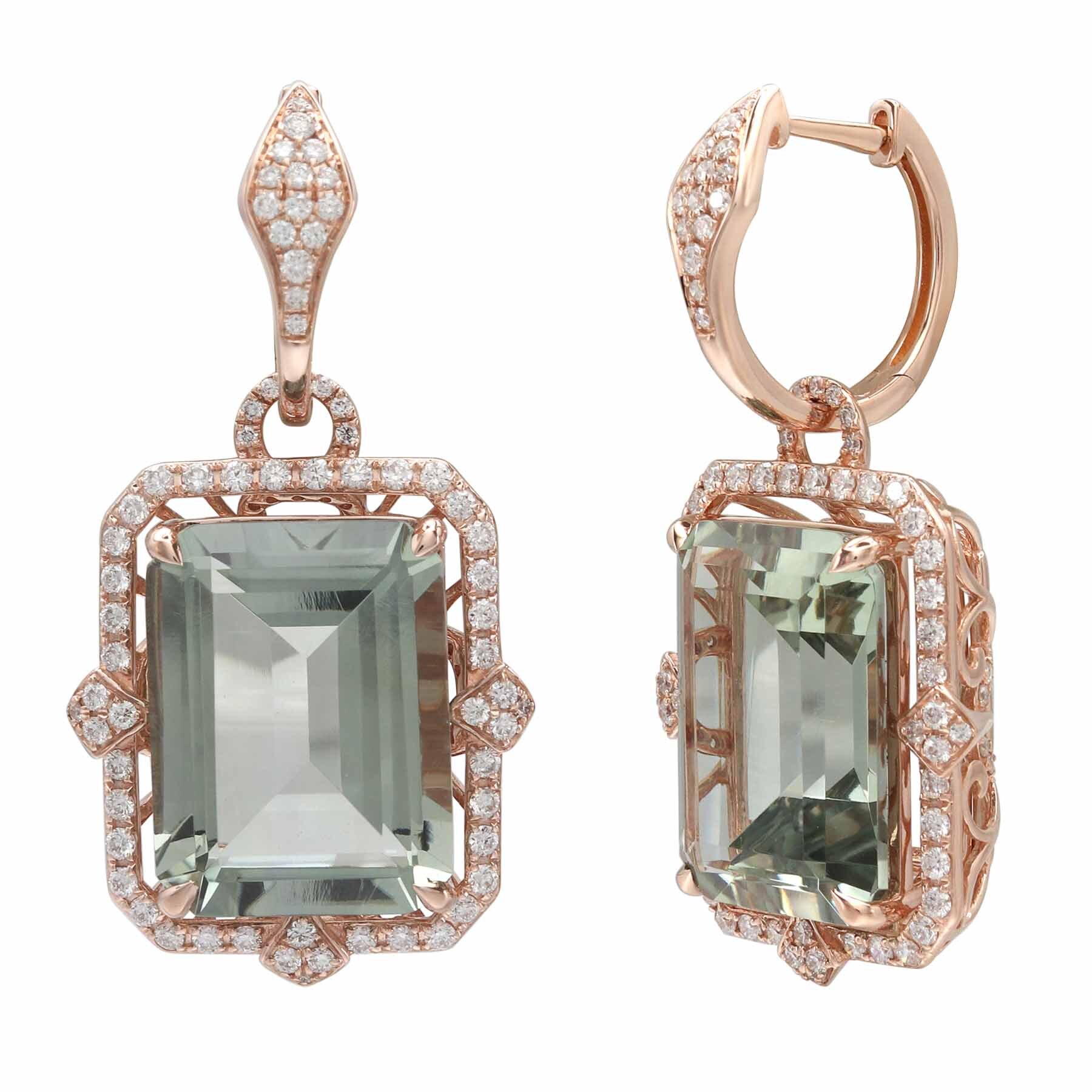 14K ROSE GOLD DIAMOND AND GREEN AMETHYST EARRING
