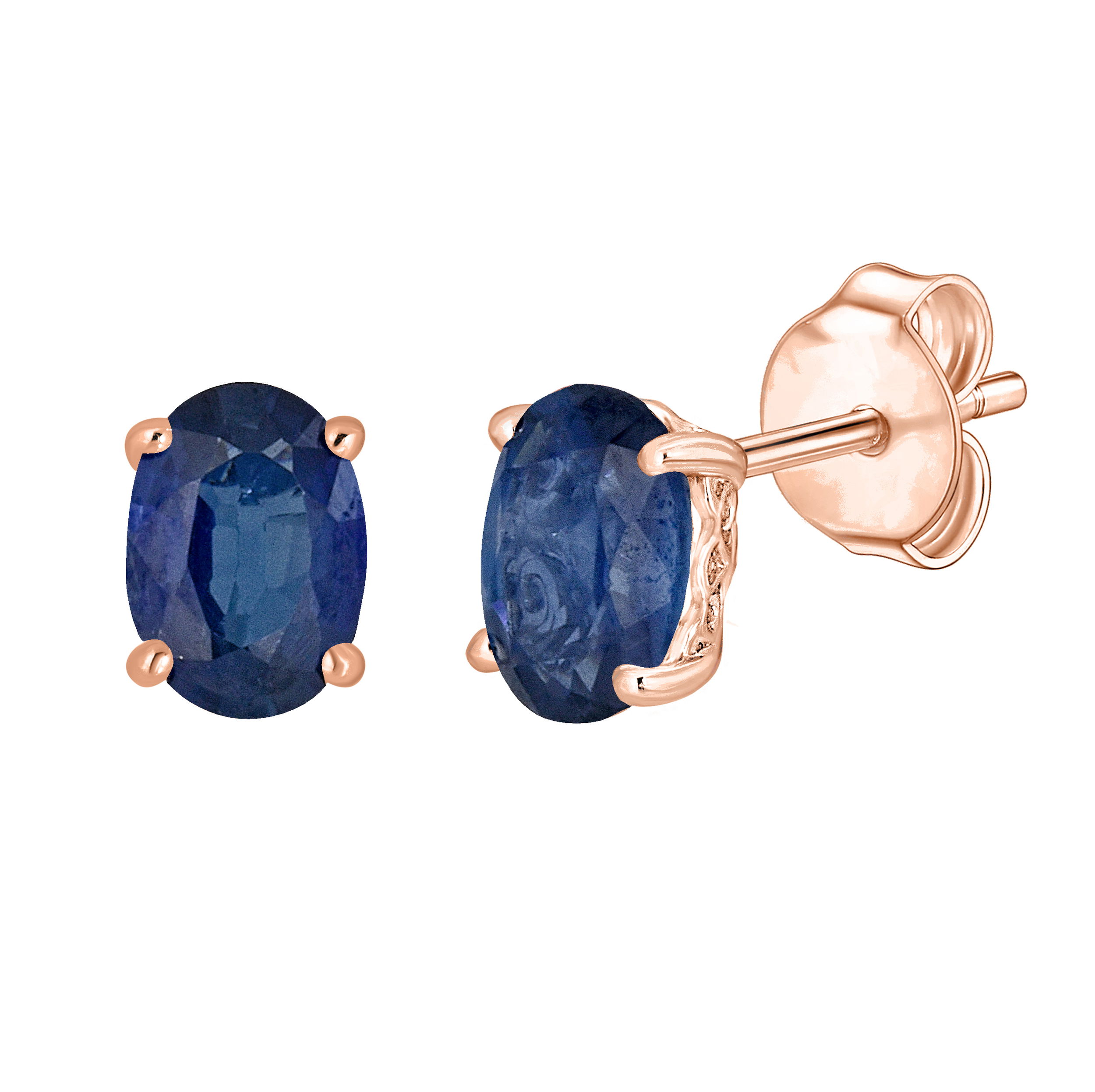 Deep blue sapphire dazzles in these elegant rose gold earrings.• 6x4mm Oval Sapphire Gemstones• 14K Rose Gold Setting• Secure Backings• Precious Birthstone Collection