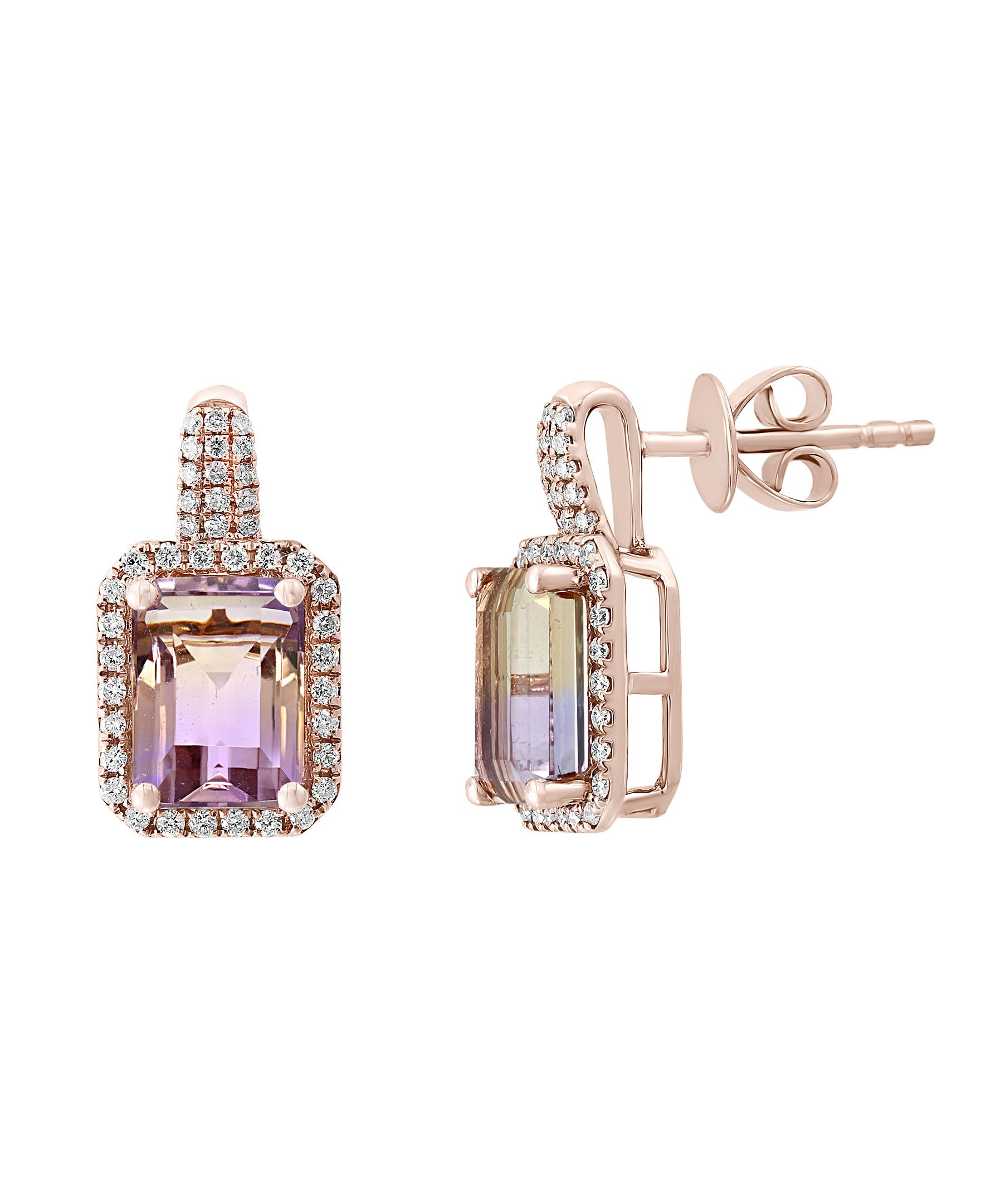Experience elegance redefined with our 14K Rose Gold Diamond and Ametrine Earrings from the Semi Precious and Ametrine Collections. Crafted in luminous 14K rose gold, each earring features a vibrant 8x6mm octagon-cut ametrine gemstone, celebrated for its unique blend of amethyst and citrine tones. Accented with brilliant diamonds, these semi-precious earrings add a sophisticated, contemporary twist to classic luxury—perfect for effortless day-to-evening glamour.