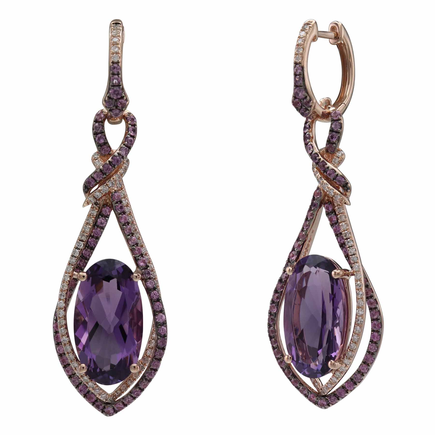 14K ROSE GOLD DIAMOND, PINK SAPPHIRE AND AMETHYST EARRING