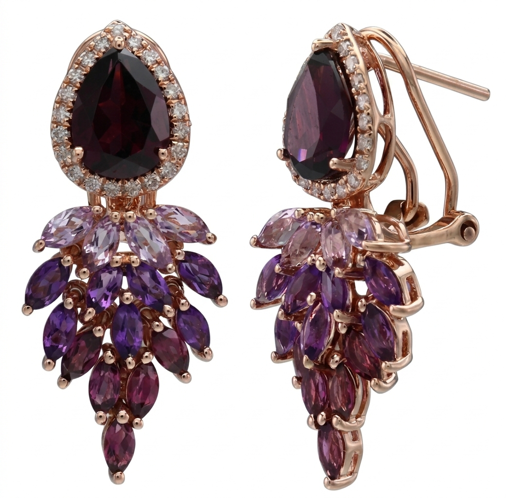 14K ROSE GOLD DIAMOND, SHADED AMETHYST, AND RHODOLITE EARRING