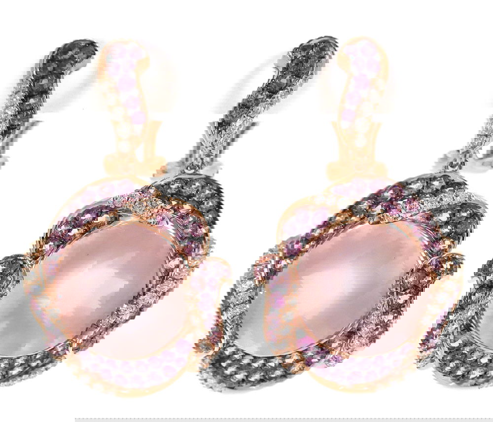 14K ROSE GOLD DIAMOND, PINK SAPPHIRE AND ROSE QUARTZ EARRING
