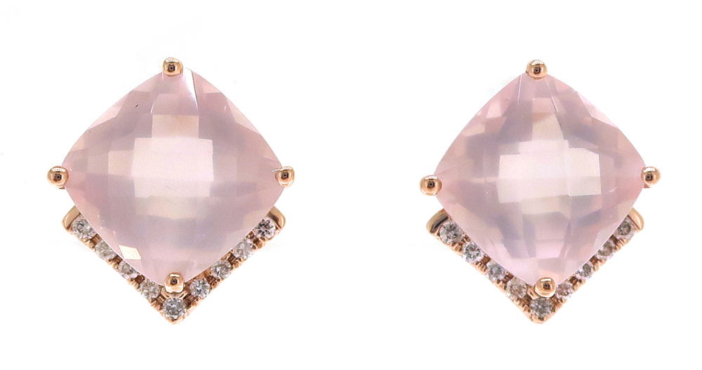14K ROSE GOLD DIAOND AND ROSE QUARTZ EARRING