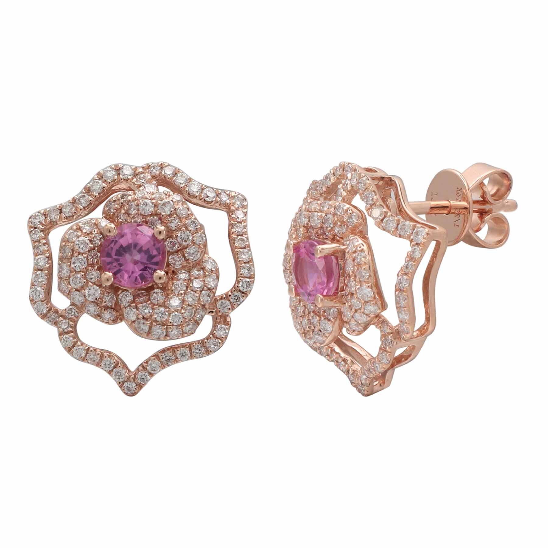 14K ROSE GOLD DIAMOND AND PINK SAPPHIRE FLOWER EARRING