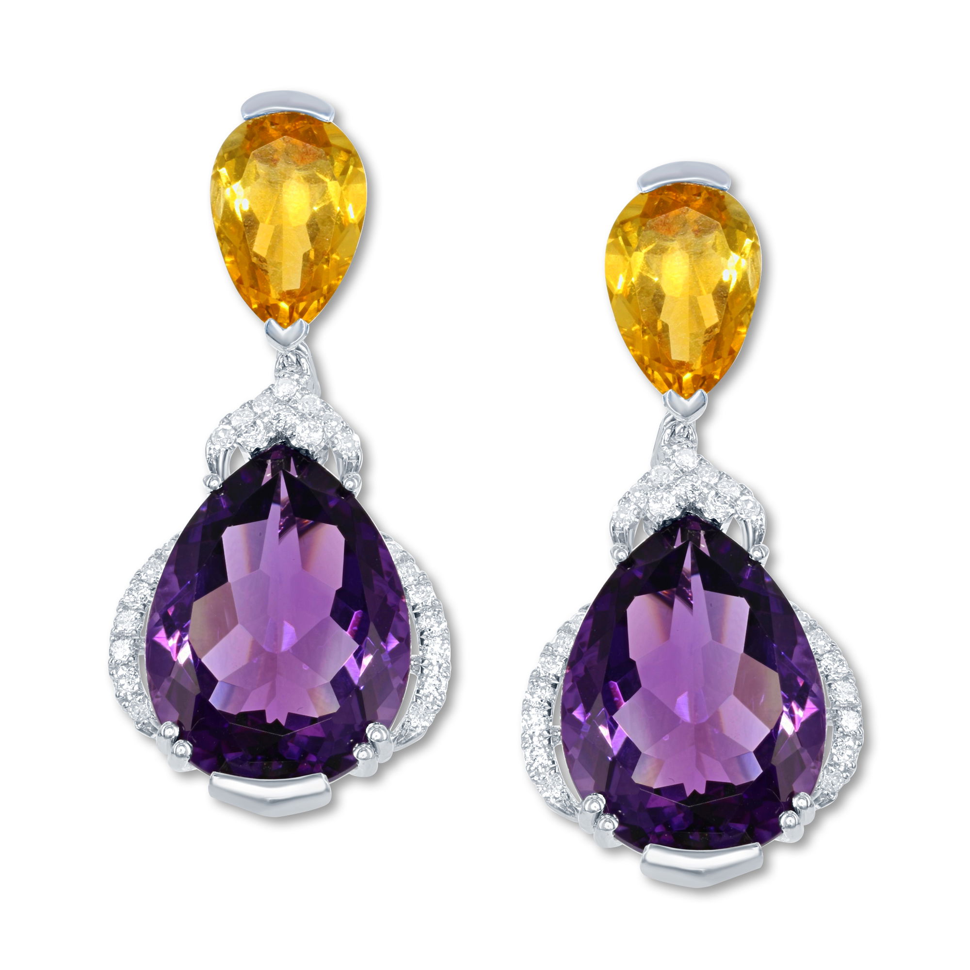 14K WHITE GOLD DIAMOND, CITRINE AND AMETHYST EARRING