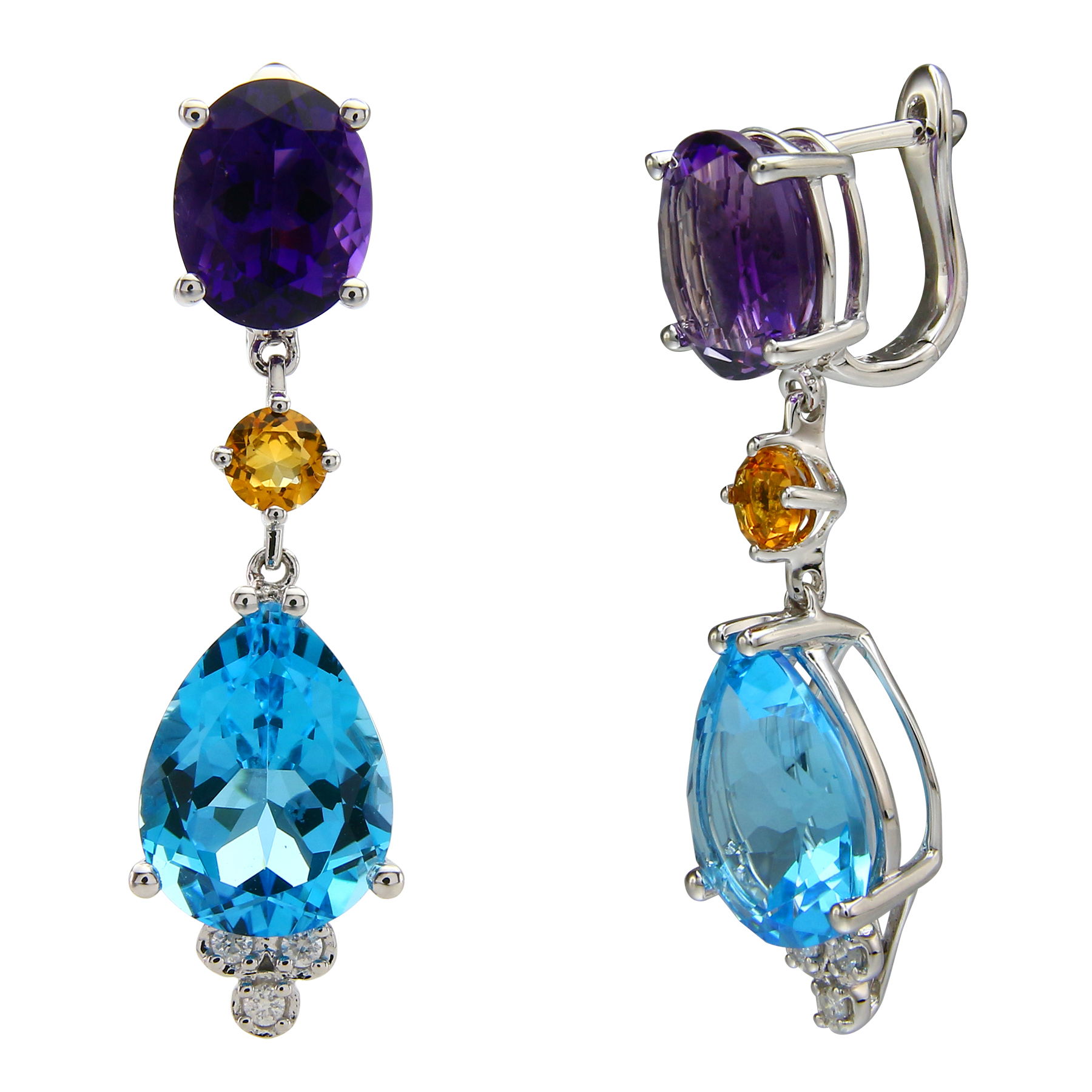 - 14K WHITE GOLD MULTICOLOR SAPPHIRE AND SWISS BLUE TOPAZ EARRING