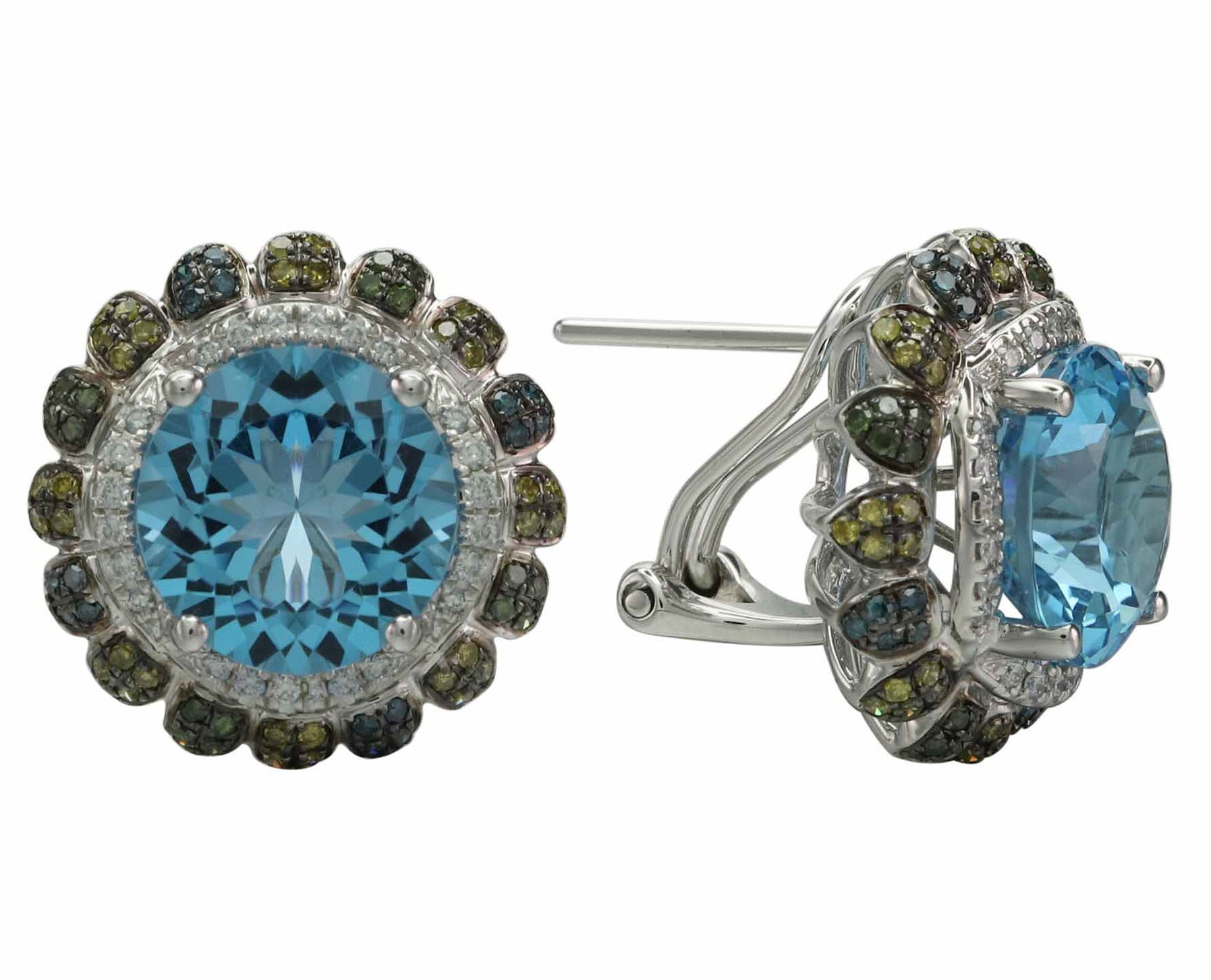 14K WHITE GOLD MULTICOLOR DIAMOND AND SWISS BLUE TOPAZ EARRING