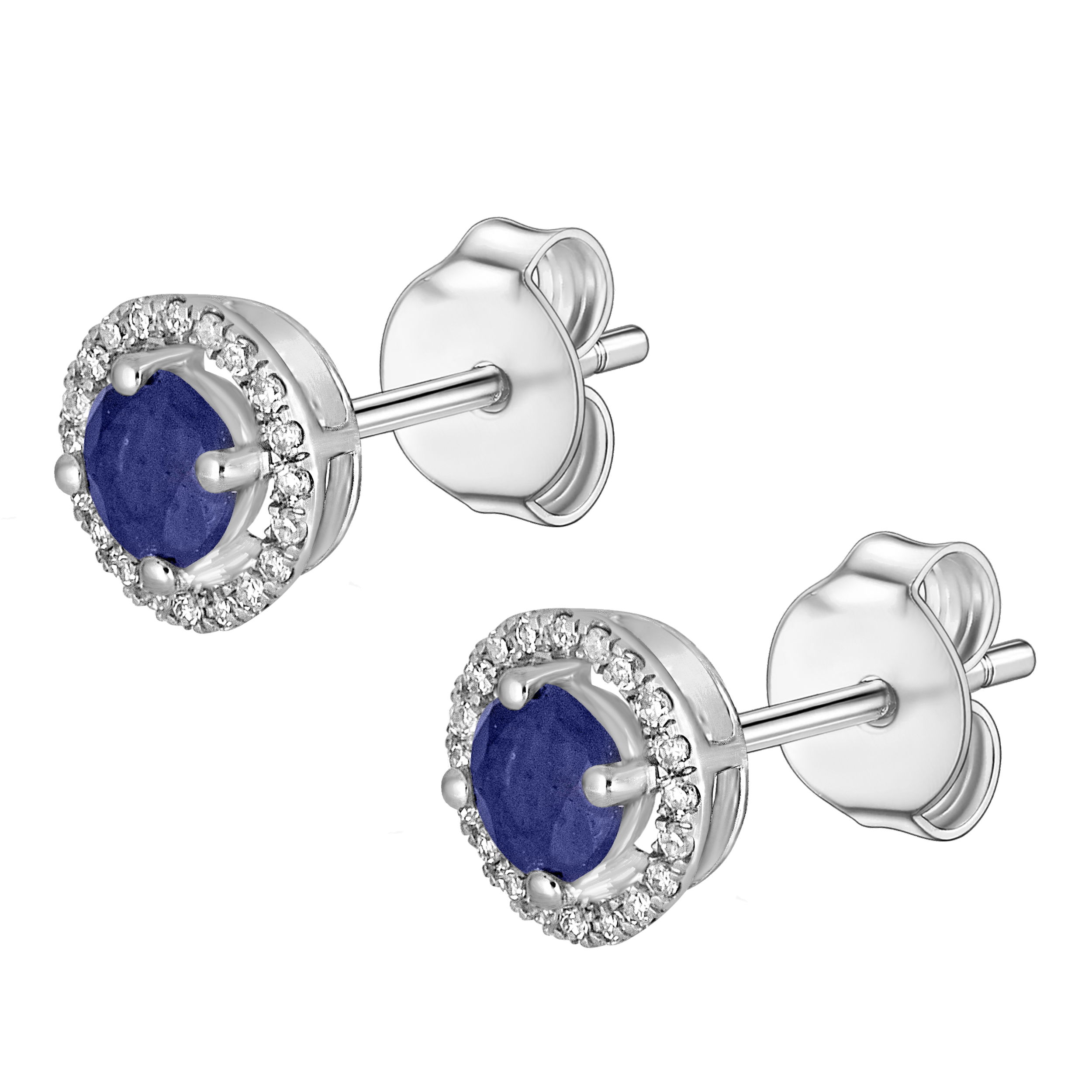 Timeless and sophisticated sapphires are accented with dazzling diamonds in these luxurious white gold earrings.• 4mm Round Sapphires• 14K White Gold Setting• Diamond Accents• Secure Backings• Precious Birthstone Collection