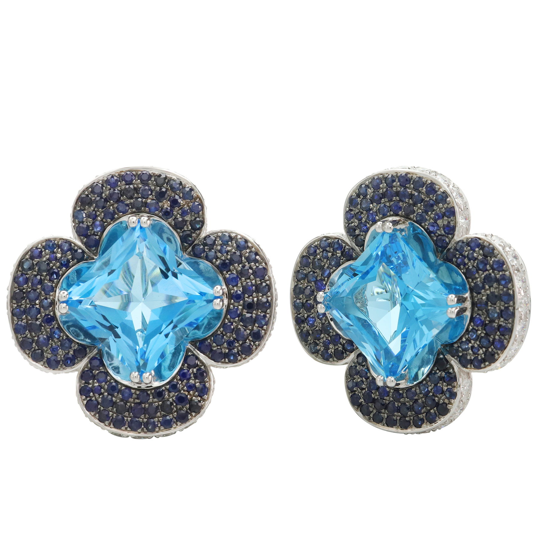 14K WHITE GOLD DIAMOND, SAPPHIRE AND SWISS BLUE TOPAZ EARRING