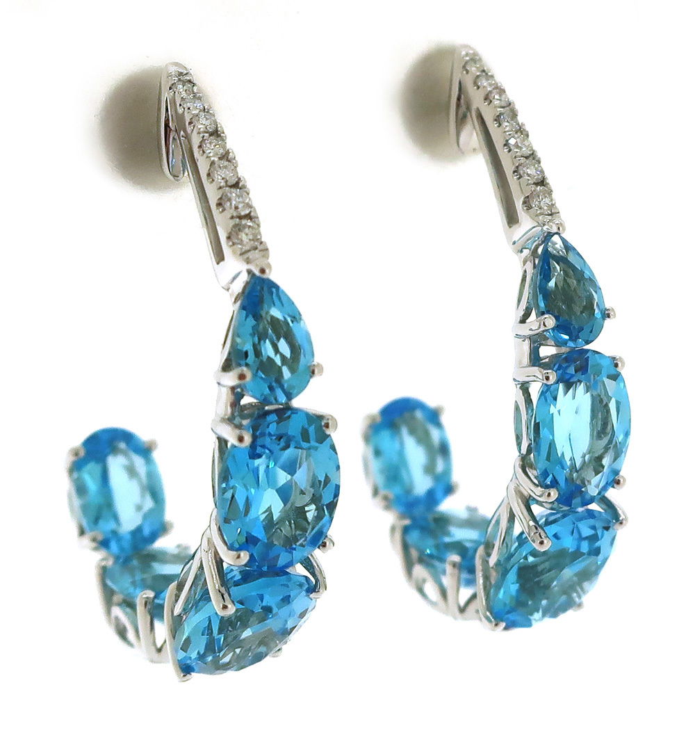 14K WHITE GOLD DIAMOND SWISS BLUE TOPAZ EARRING