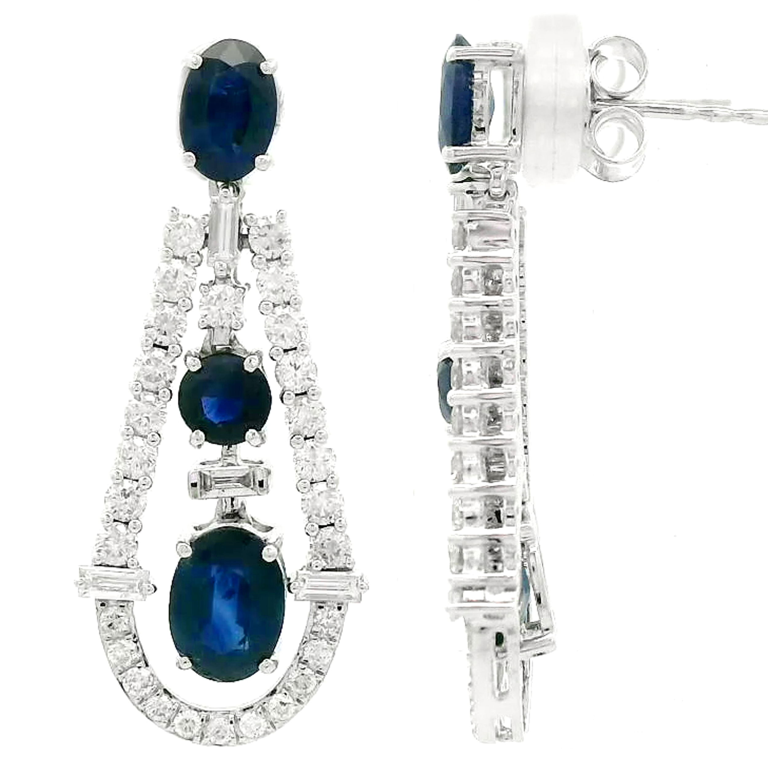 14K WHITE GOLD DIAMOND AND SAPPHIRE EARRING
