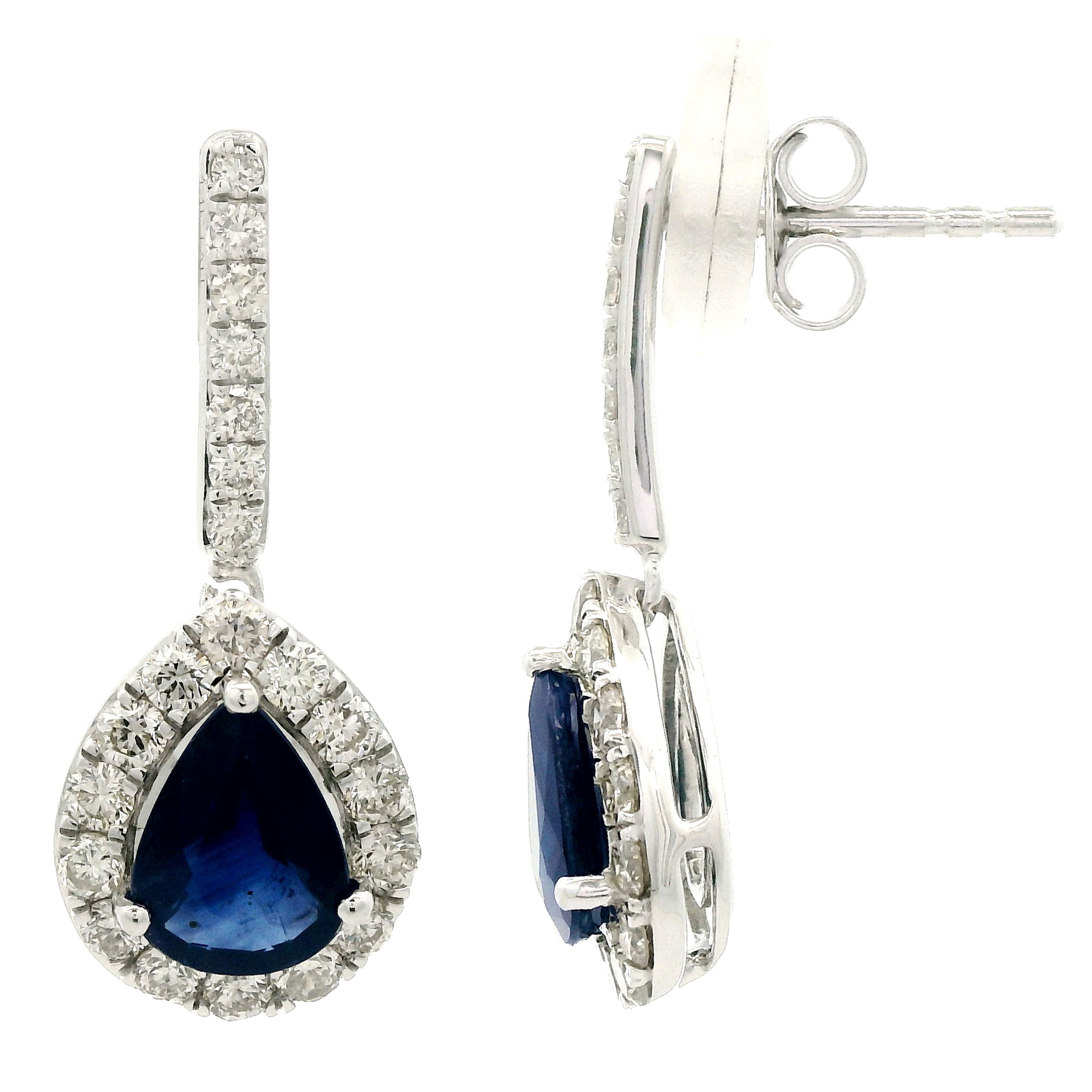 14K WHITE GOLD DIAMOND AND SAPPHIRE EARRING