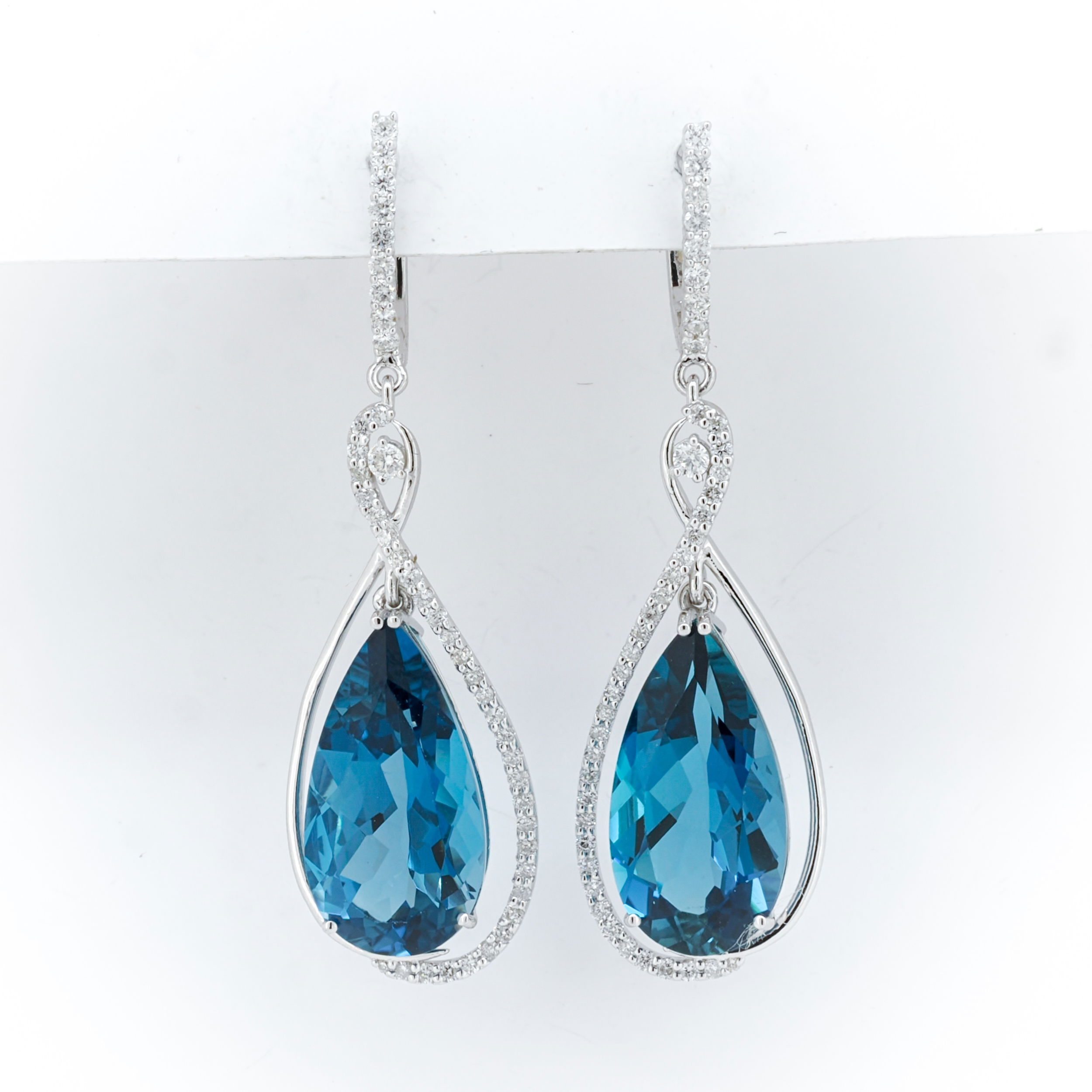 14K WHITE GOLD DIAMOND AND LONDON BLUE TOPAZ EARRING