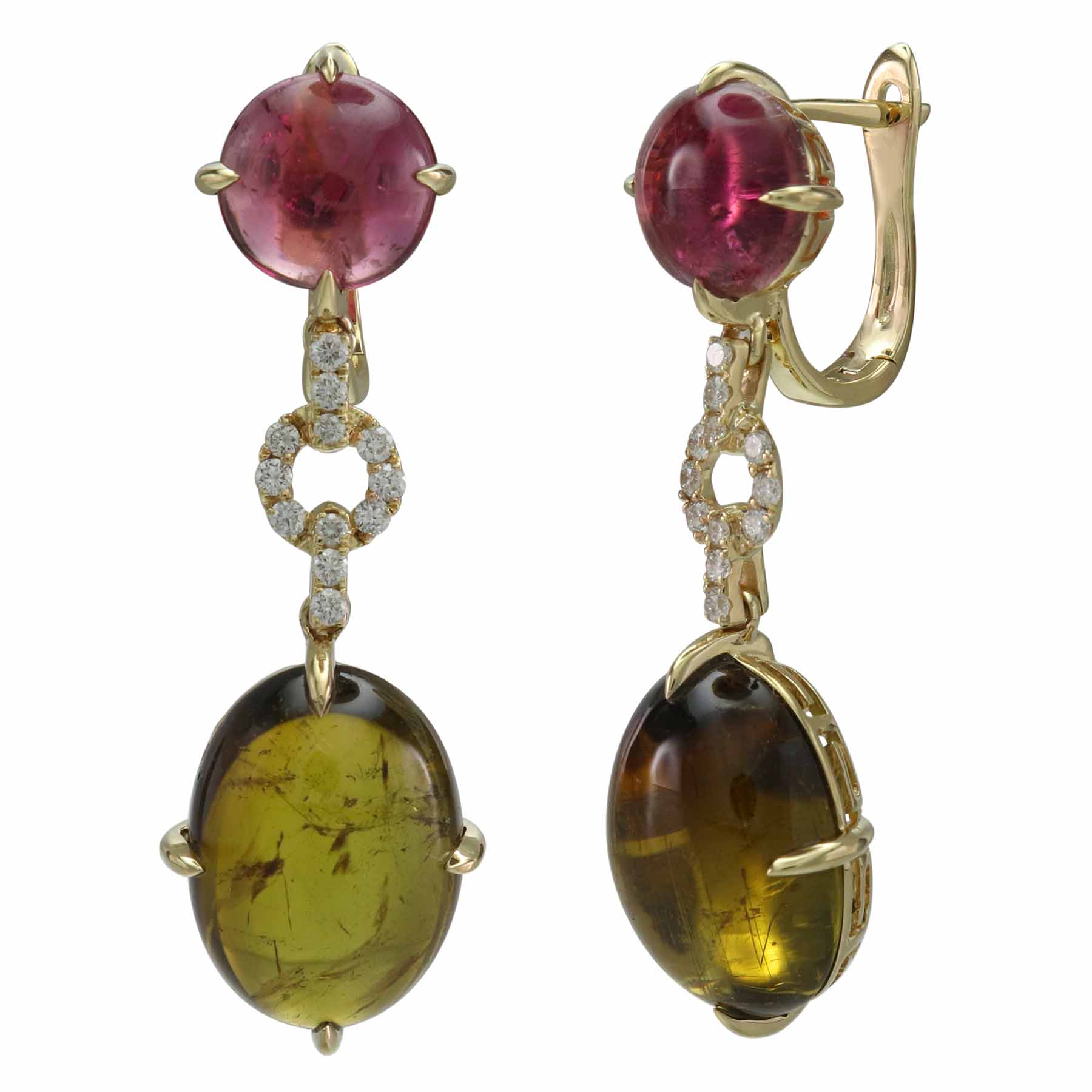 14K YELLOW GOLD DIAMOND AND MULTI-COLOR TOURMALINE EARRING