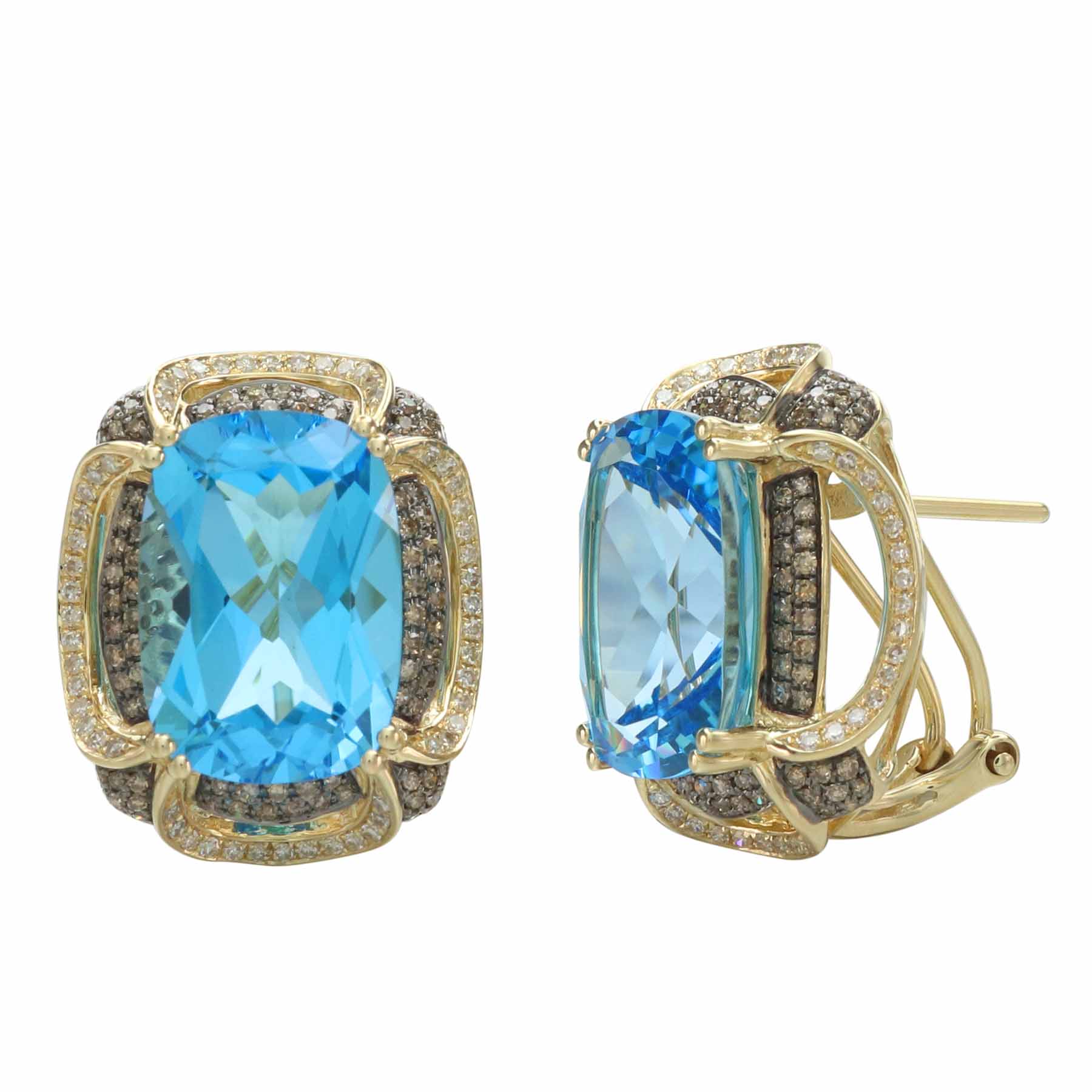 14K YELLOW GOLD DIAMOND, BROWN DIAMOND AND SWISS BLUE TOPAZ EARRING