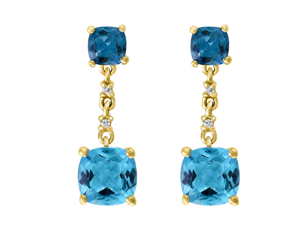 14K YELLOW GOLD DIAMOND, LONDON BLUE TOPAZ AND SWISS BLUE TOPAZ EARRING