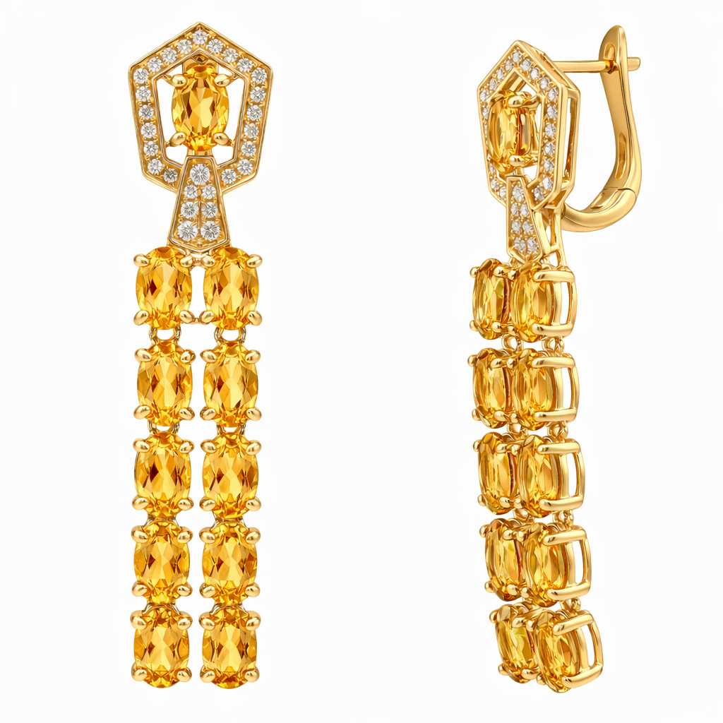 14K YELLOW GOLD DIAMOND AND CITRINE EARRING