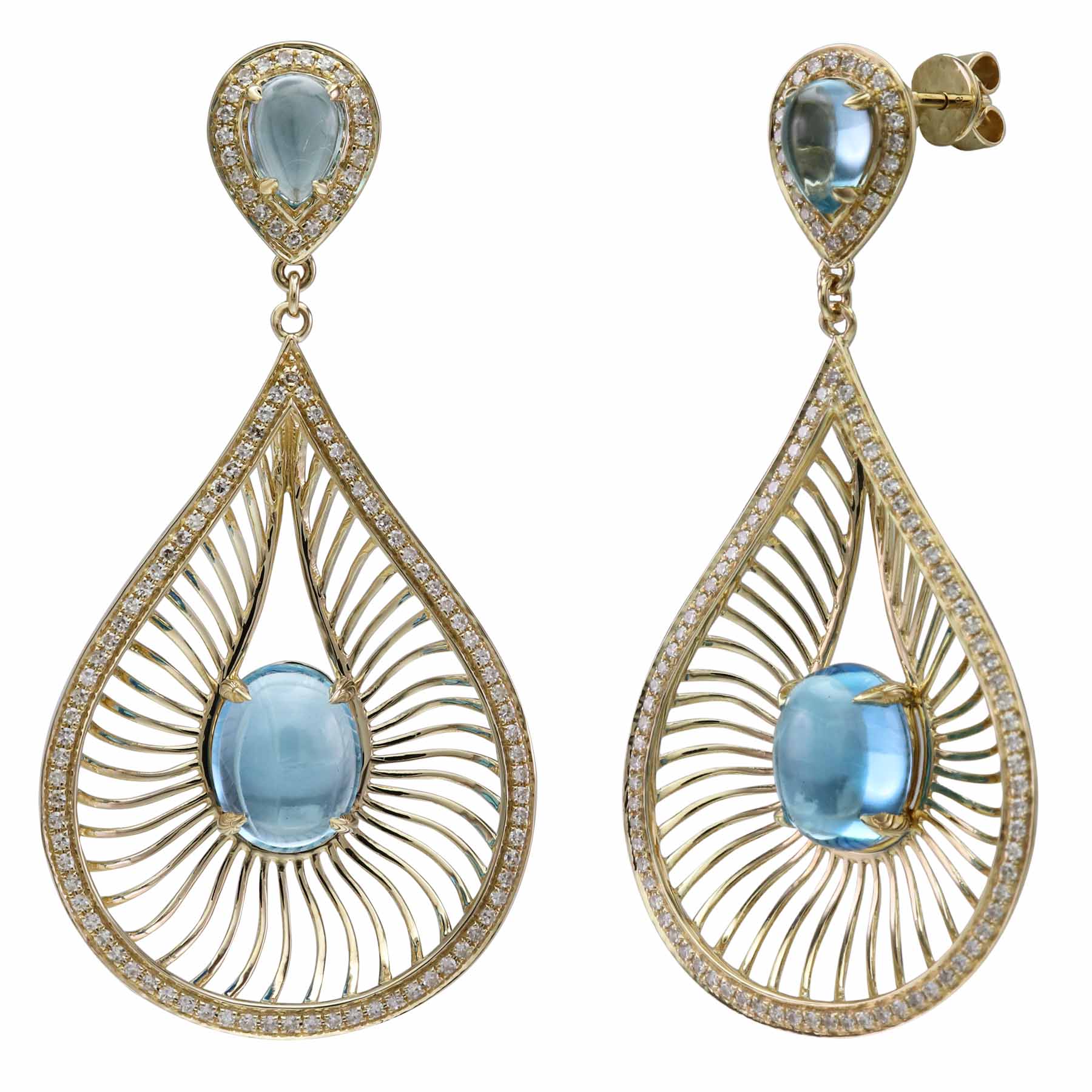 14K YELLOW GOLD DIAMOND AND SWISS BLUE TOPAZ EARRING