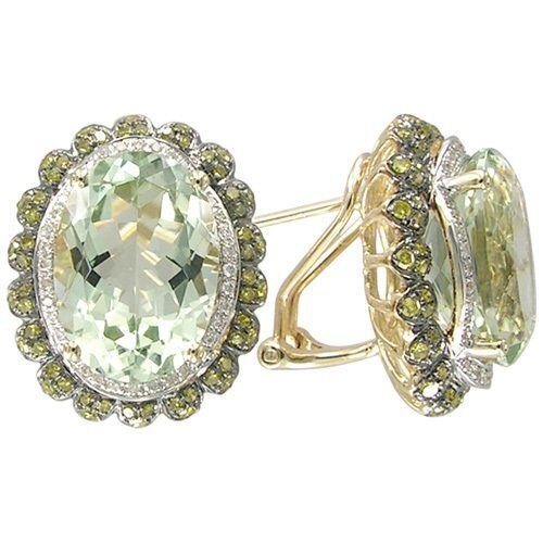 14K YELLOW GOLD DIAMOND, BROWN DIAMOND AND GREEN AMETHYST EARRING