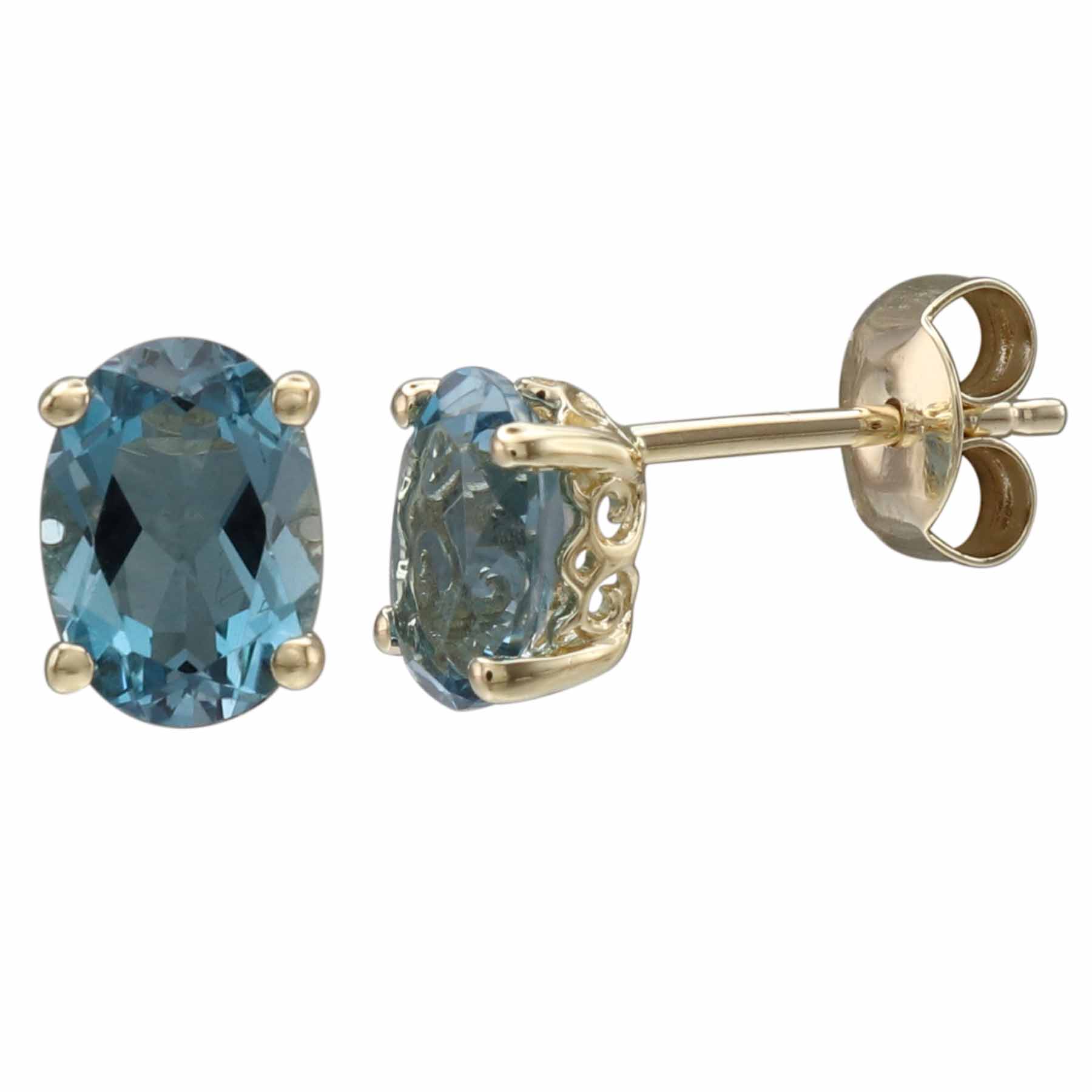 Rich London blue topaz stones bring deep, captivating color to these elegant yellow gold earrings.• 7x5mm Oval London Blue Topaz Gemstones• 14K Yellow Gold Setting• Classic Stud Design• Semi-Precious Collection