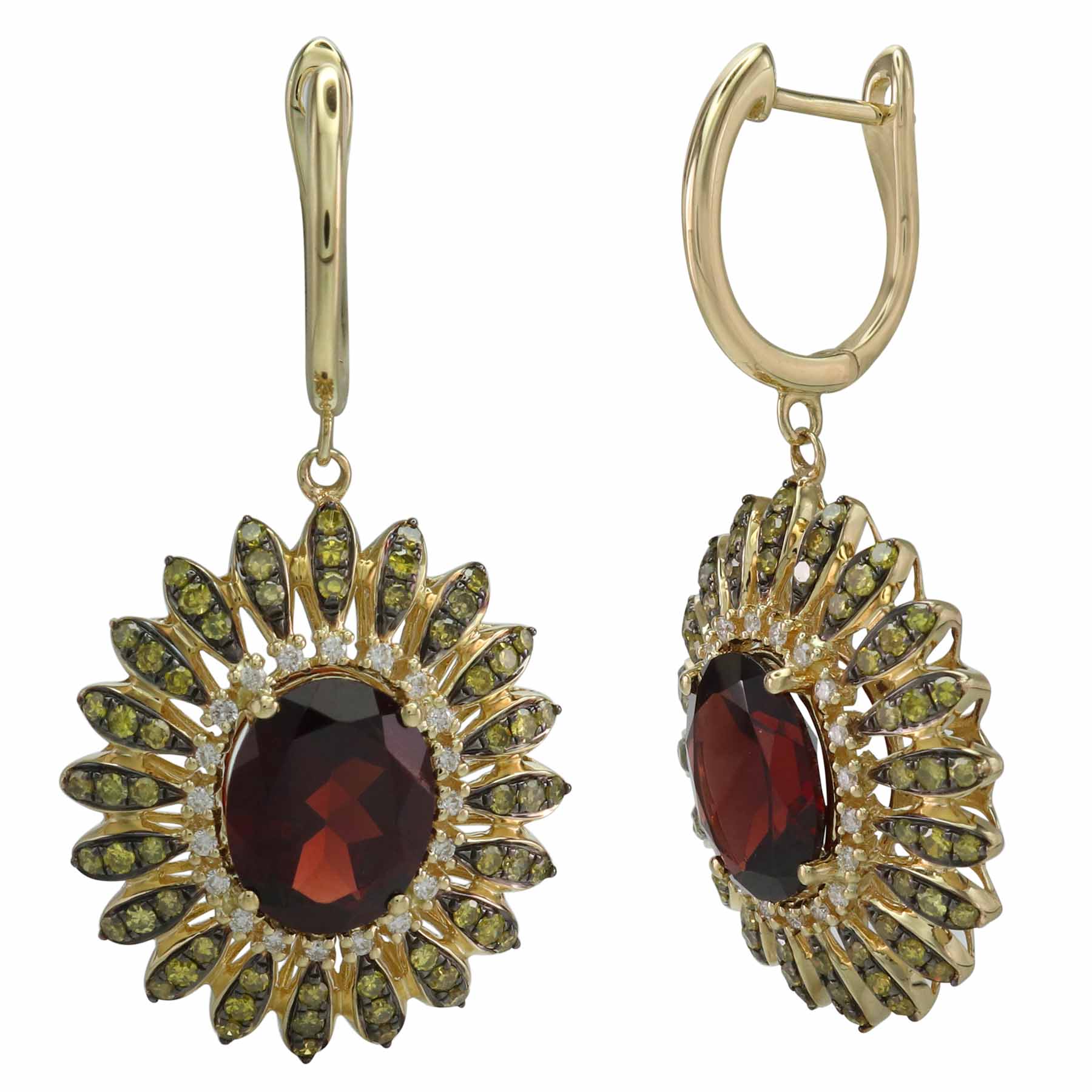 14K YELLOW GOLD DIAMOND, TREATED YELLOW DIAMOND AND GARNET EARRING