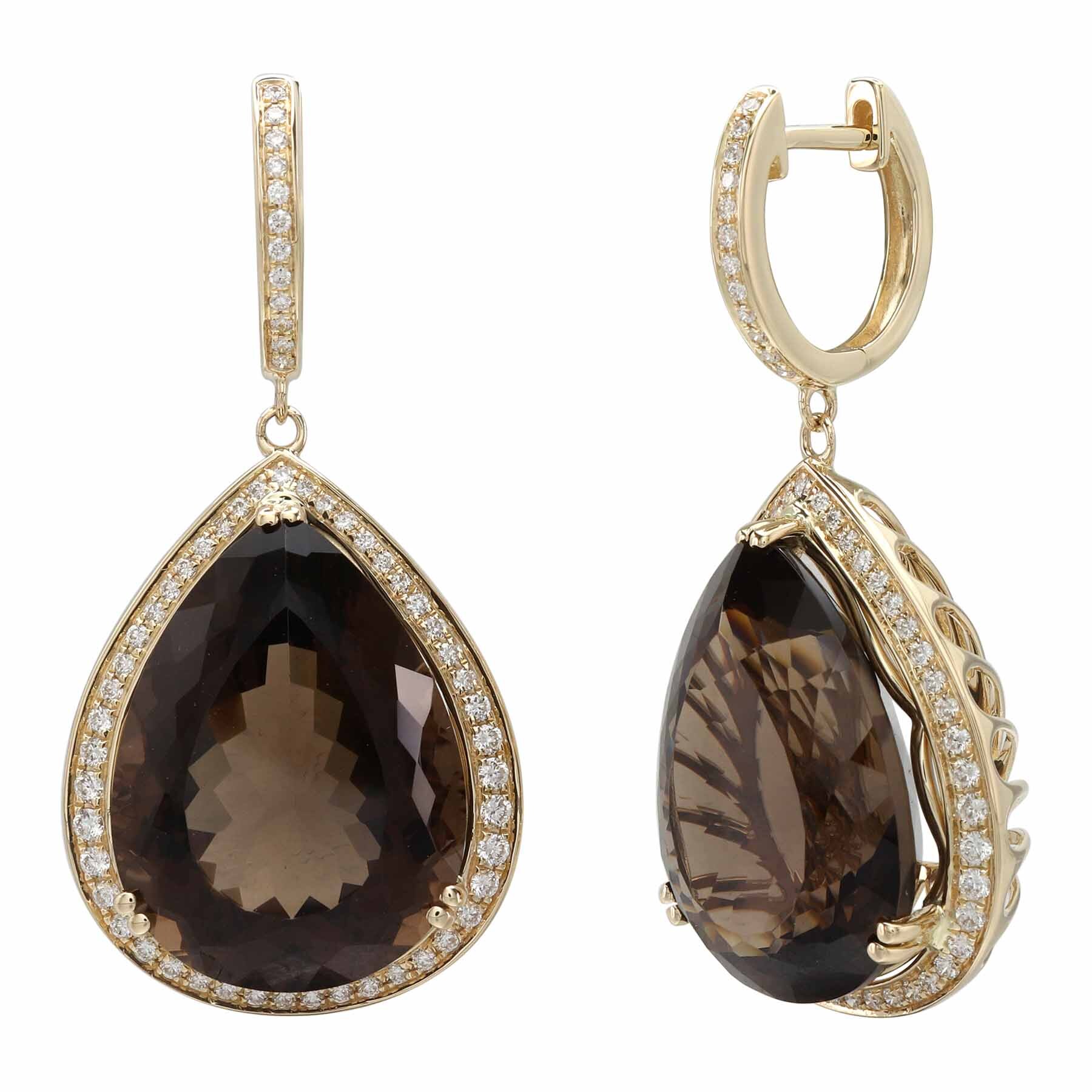 14K YELLOW GOLD DIAMOND AND SMOKY QUARTZ EARRING