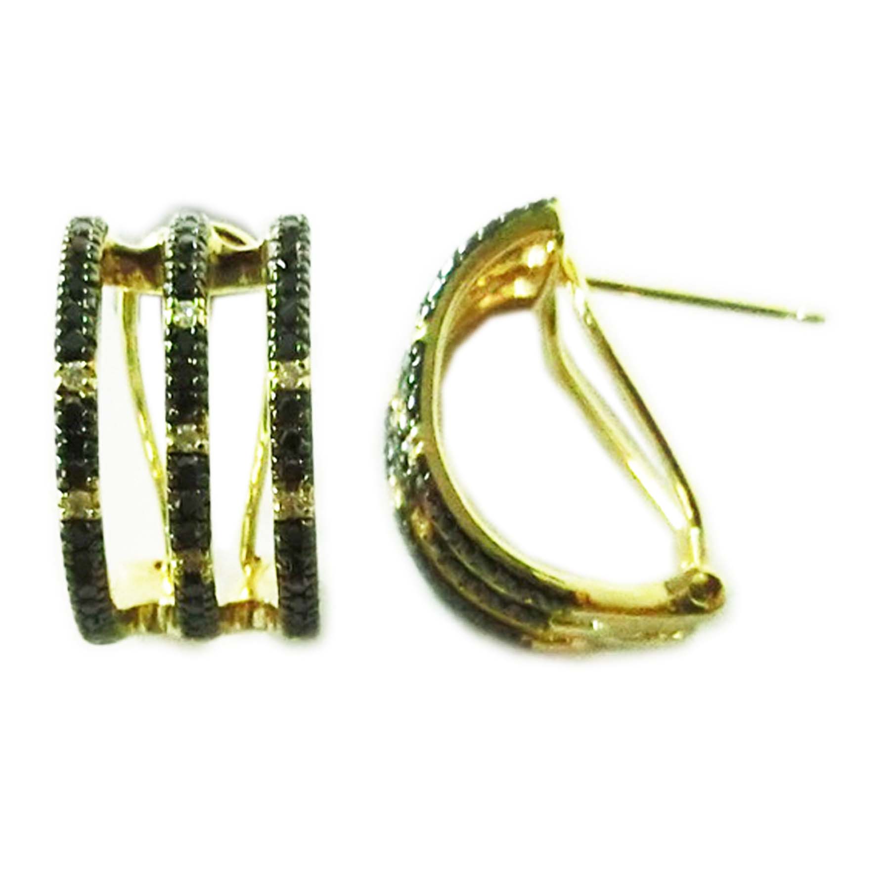 14K YELLOW GOLD DIAMOND AND TREATED BLACK DIAMOND EARRING